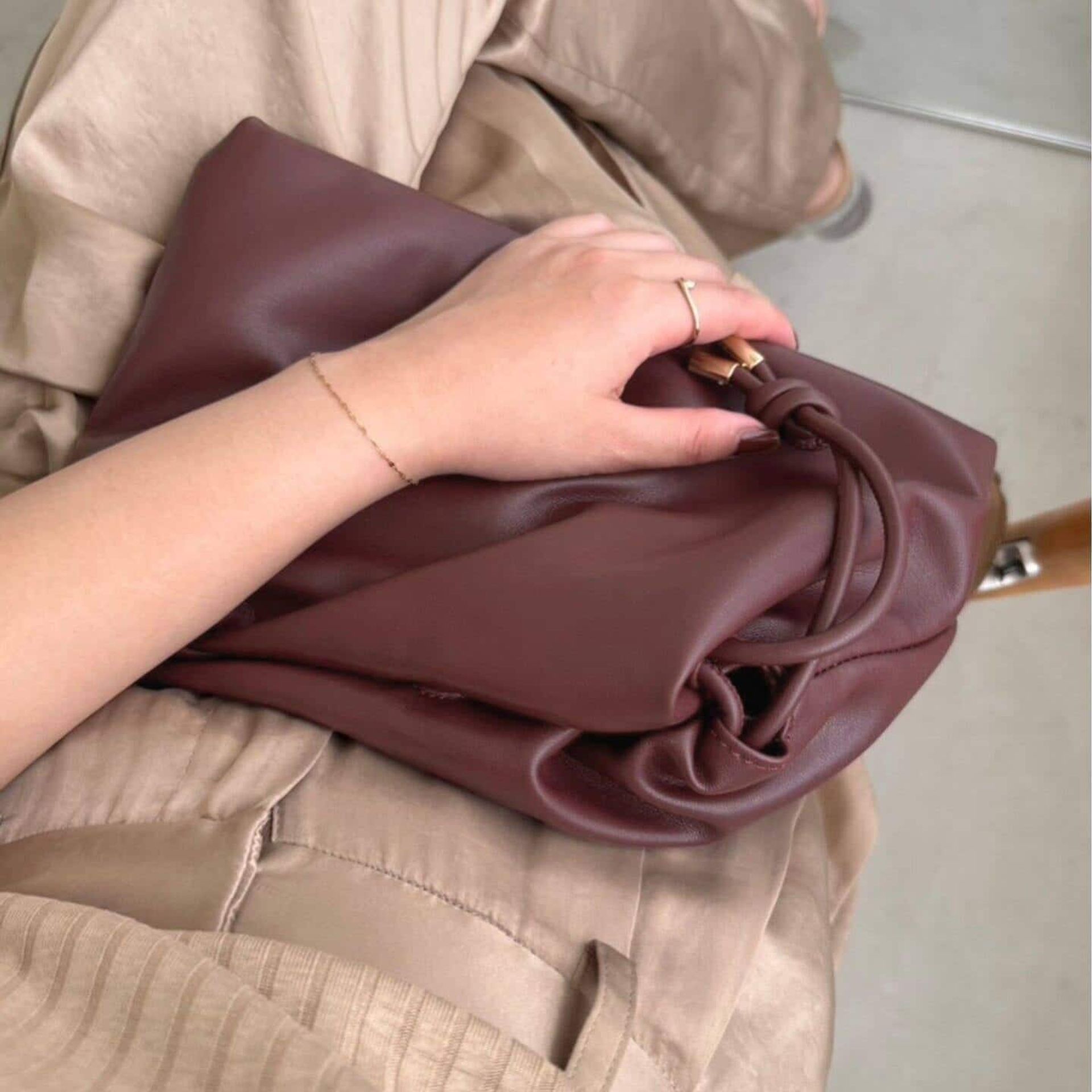軽量でコロンとしたフォルムが可愛い巾着バッグ。