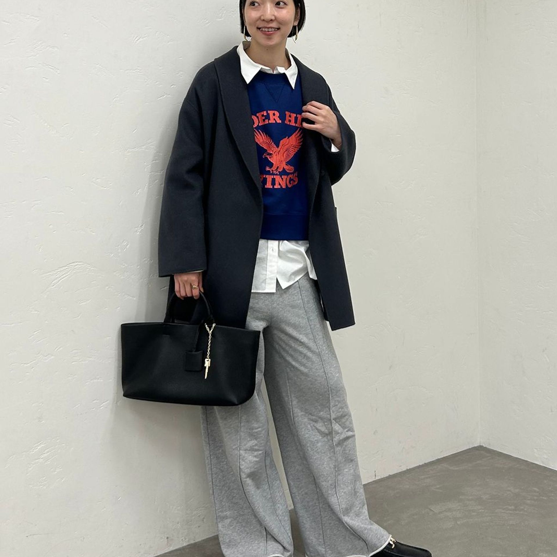 サテンや表面感のあるデザインボトムス、スウェットパンツなど幅広いスタイリングができます。