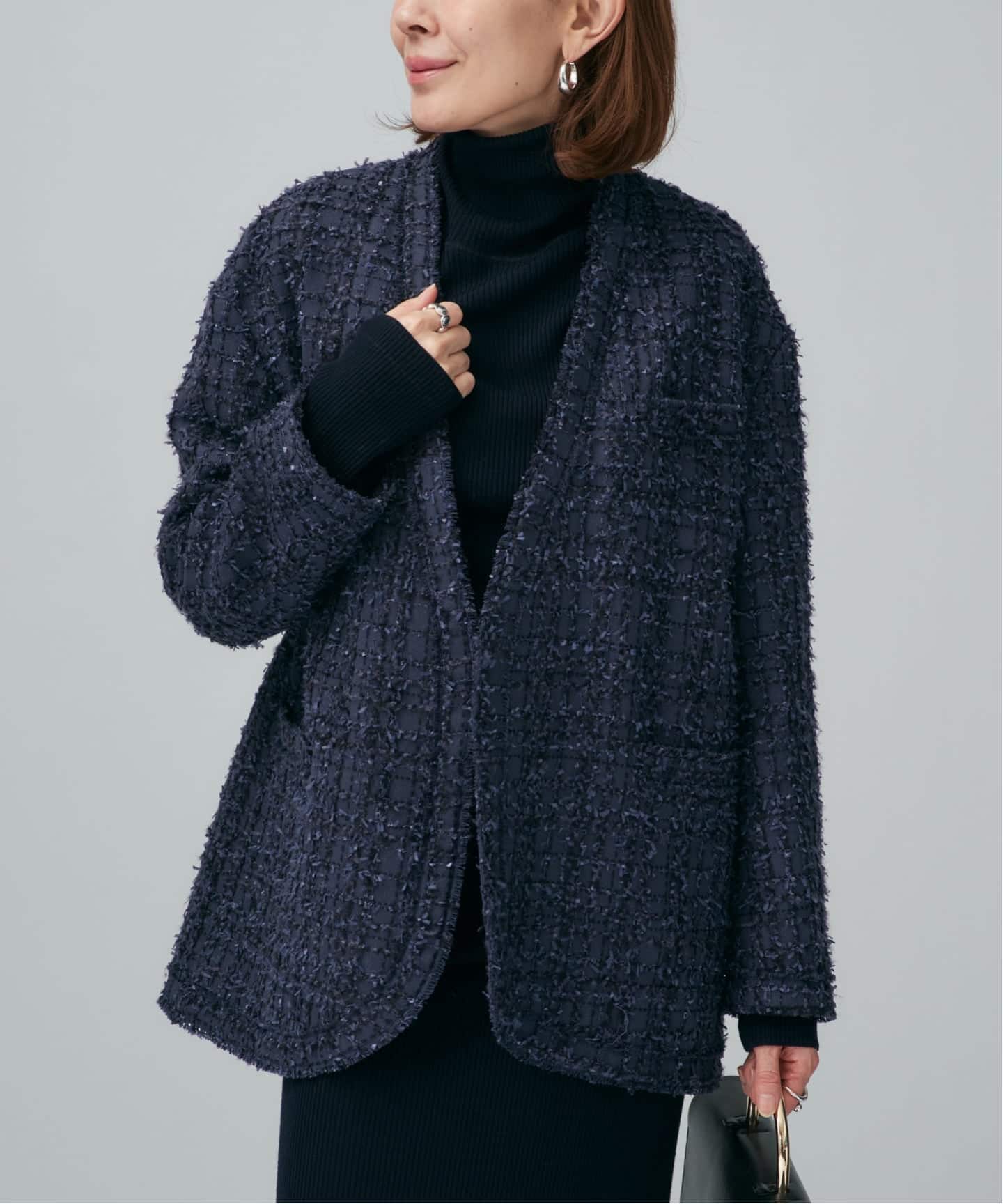 上質なメルトン素材を使用したショートコート。ゆったりとしたシルエットで、洗練された大人のスタイルを演出します。