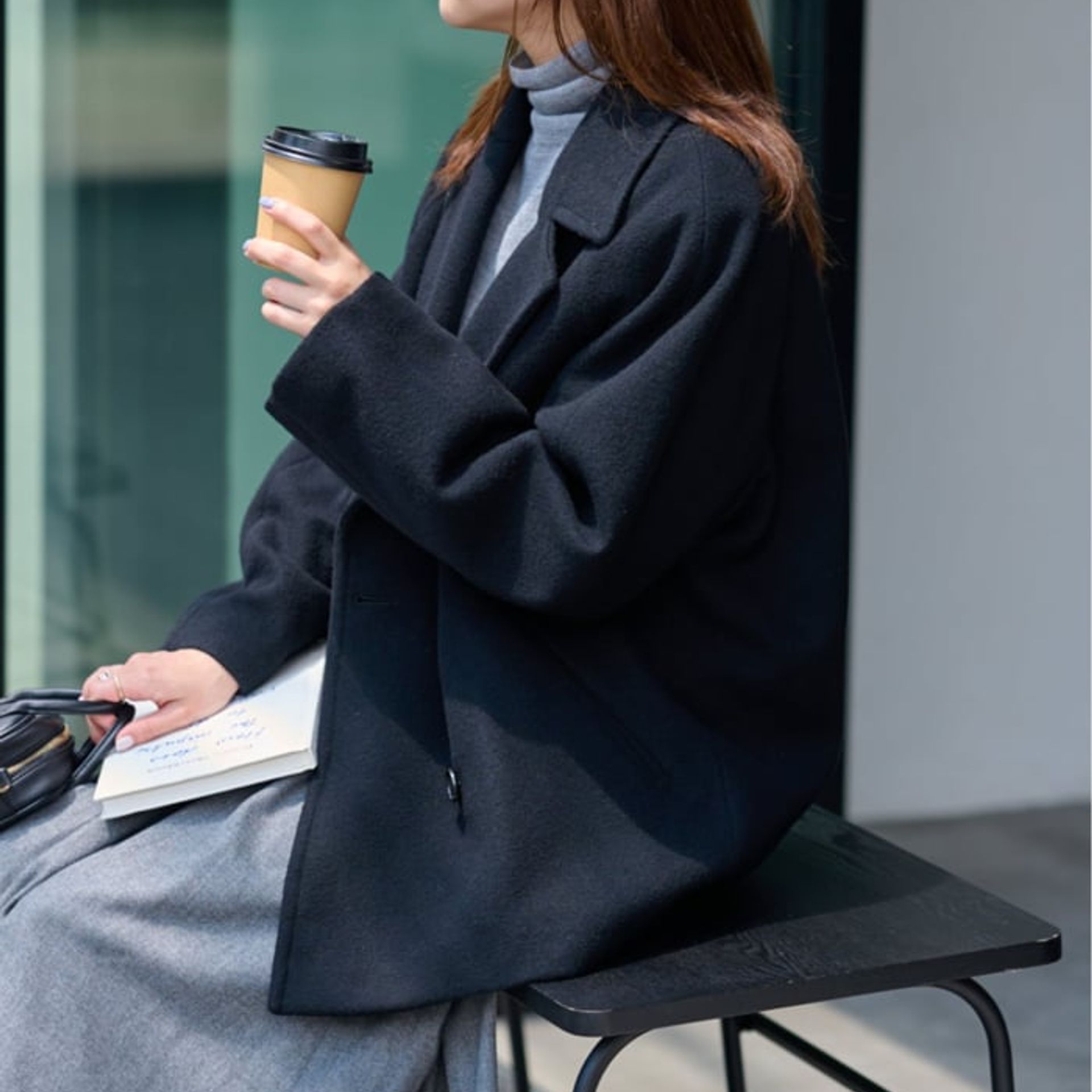 ニットやスウェットを着こみやすいサイズ感もうれしい優秀コートです◎