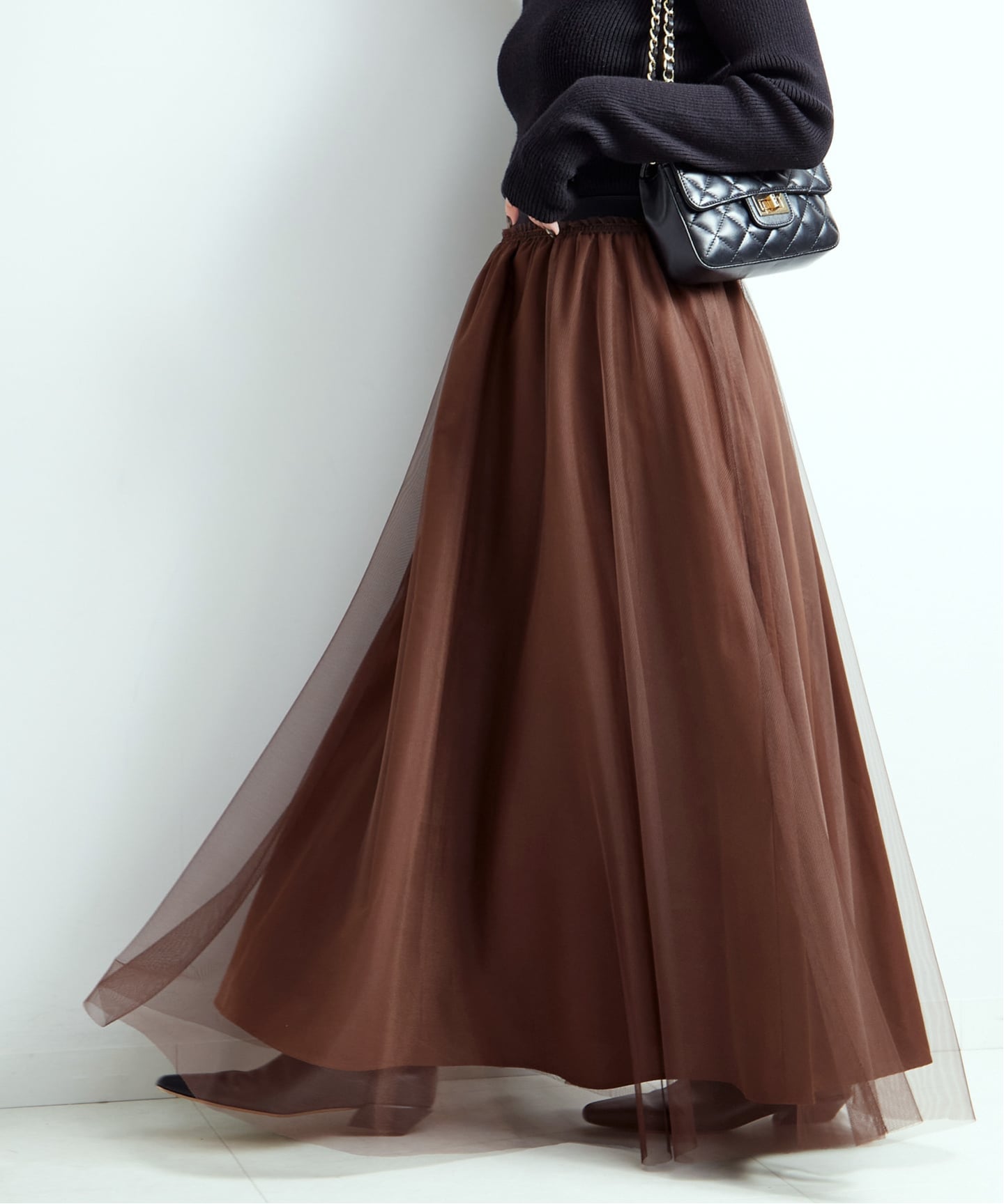 柔らかくエアリーなチュール素材がフェミニンなロングスカート。
