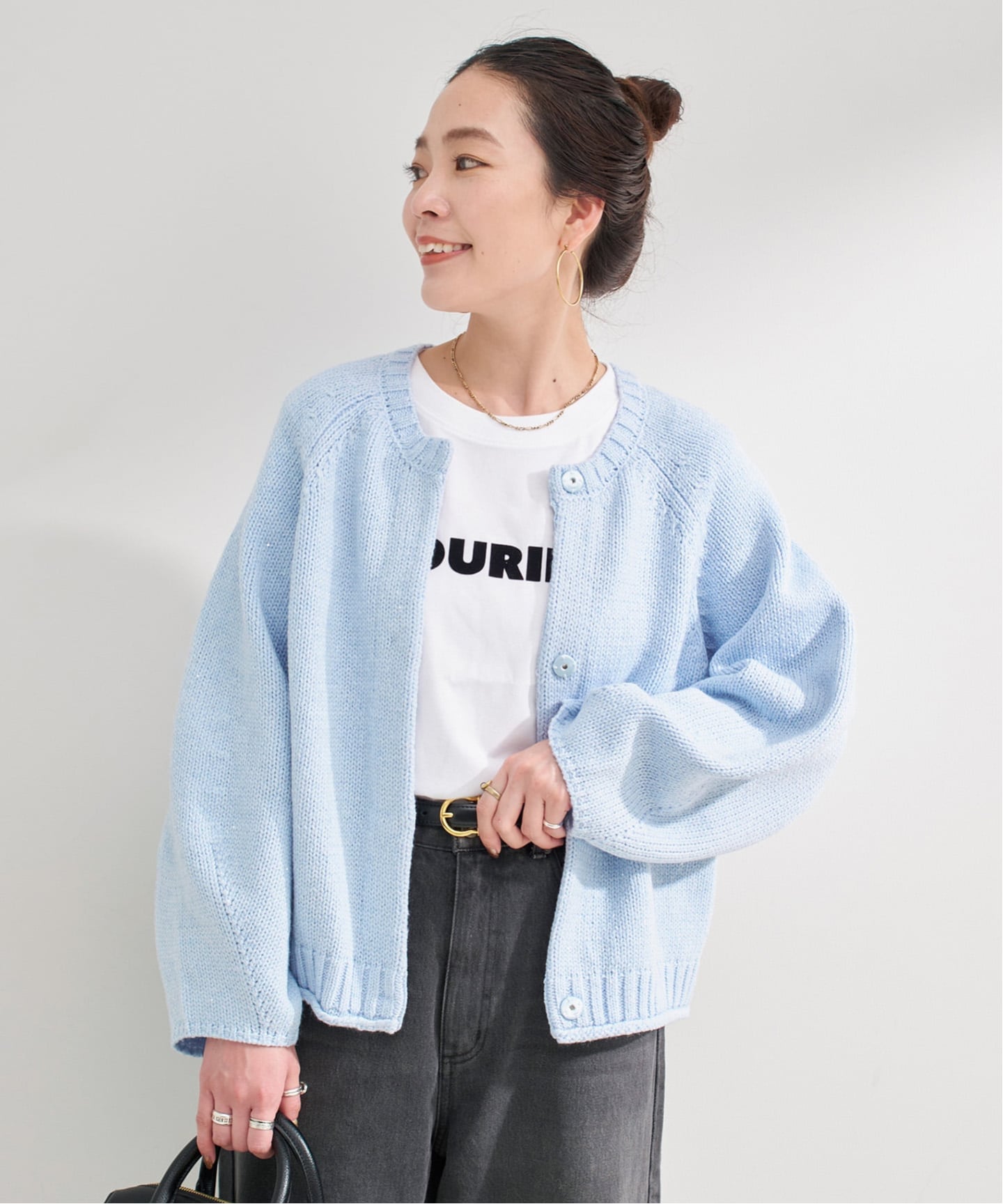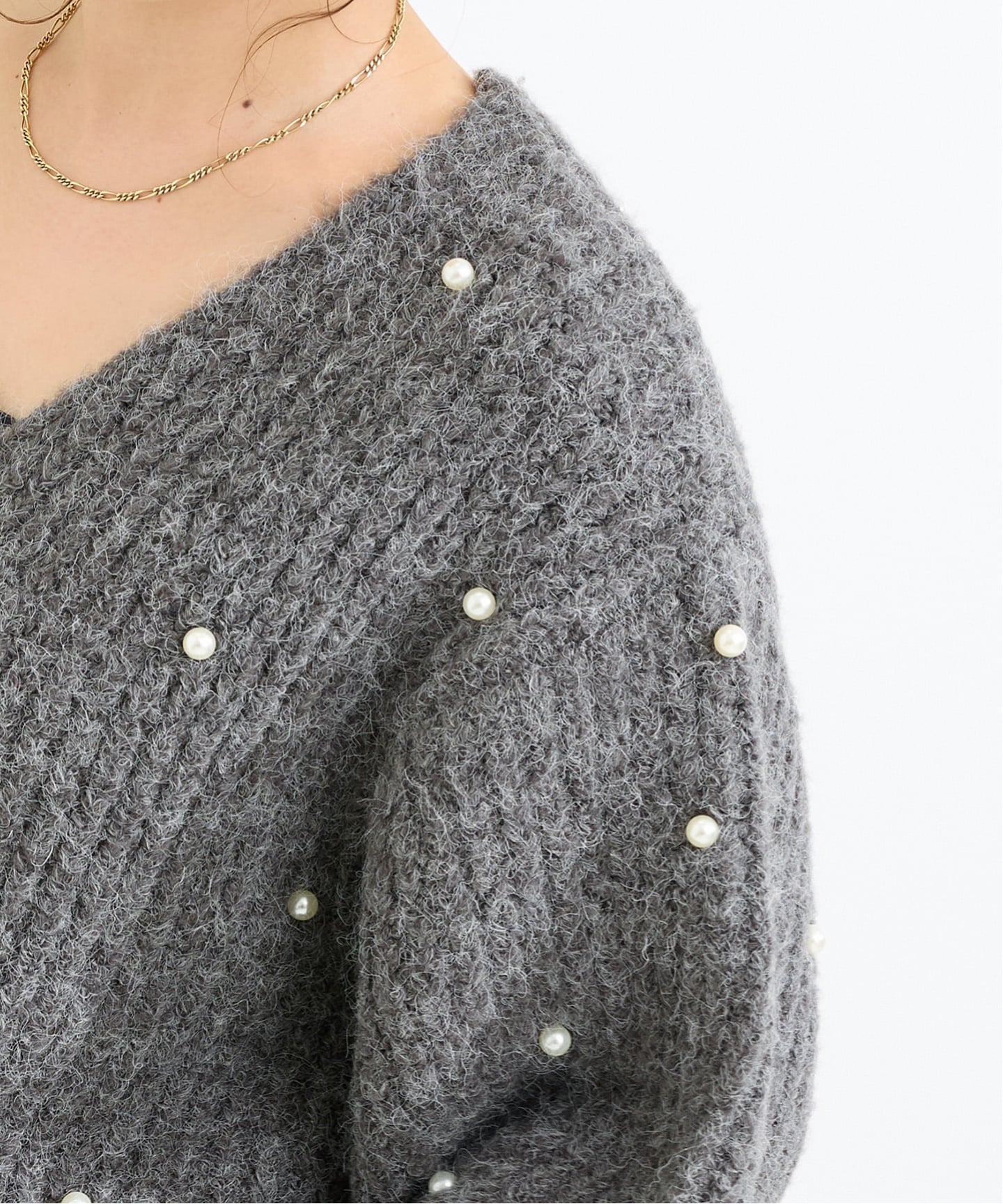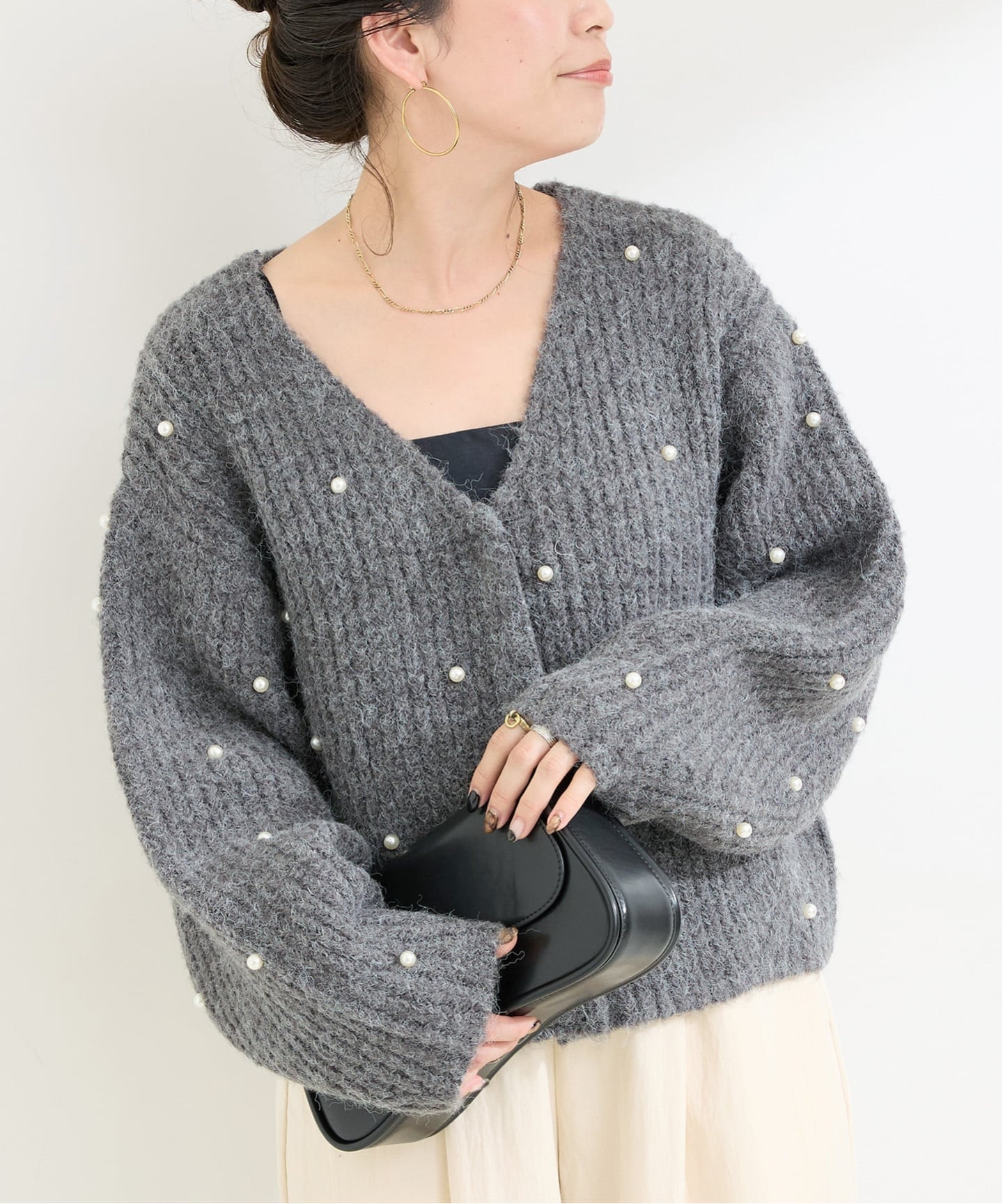 上品なパール調のディテールでフェミニンに仕立てたカーディガン。