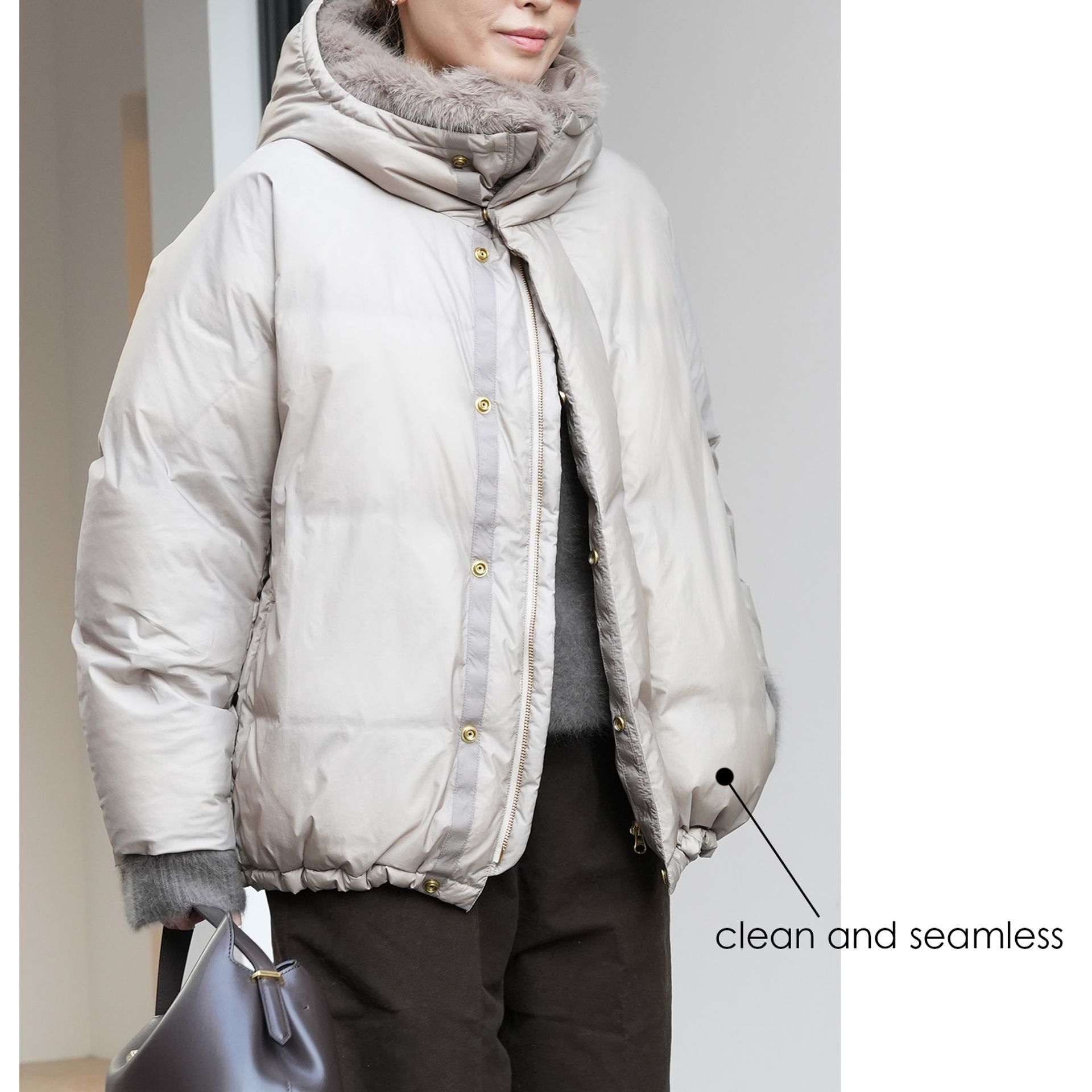 CELERIのファーバラクラバとのアレンジすれば、ベーシックなダウンを今年顔にアップデート。