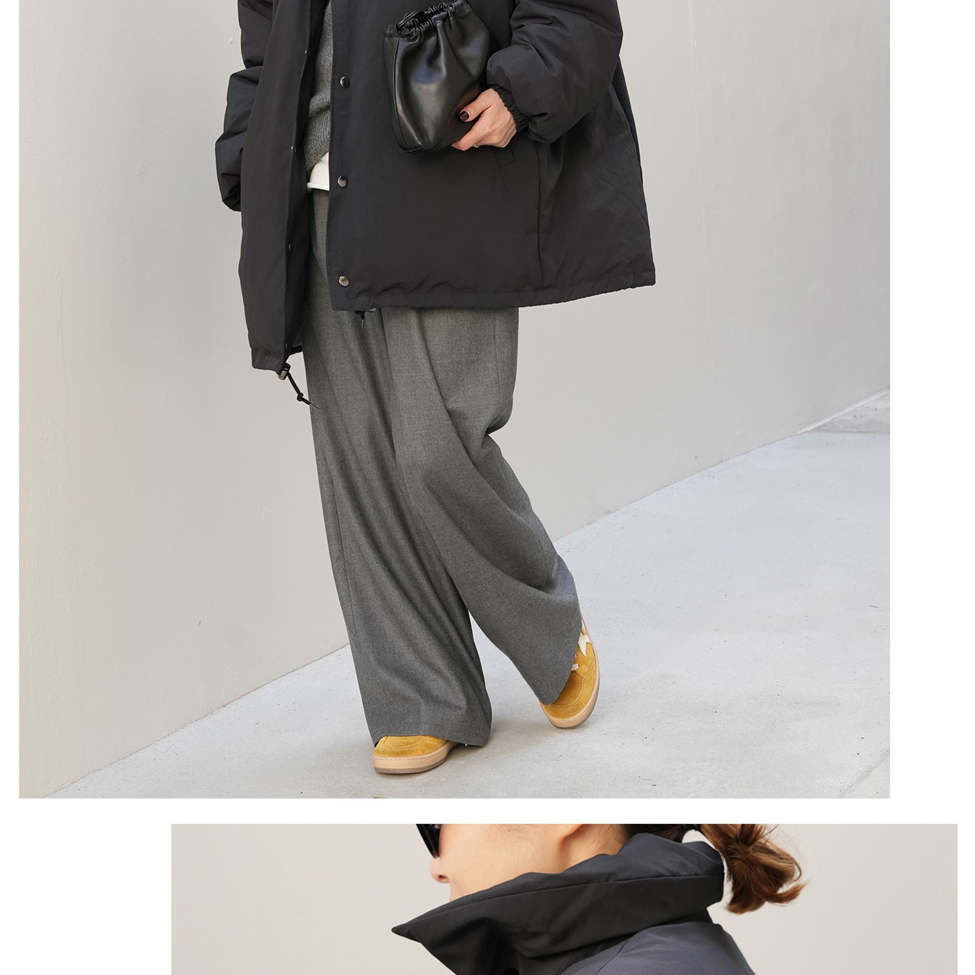 ボリュームのあるスタンドネックが、着方で印象を変えて楽しめるのも嬉しい。