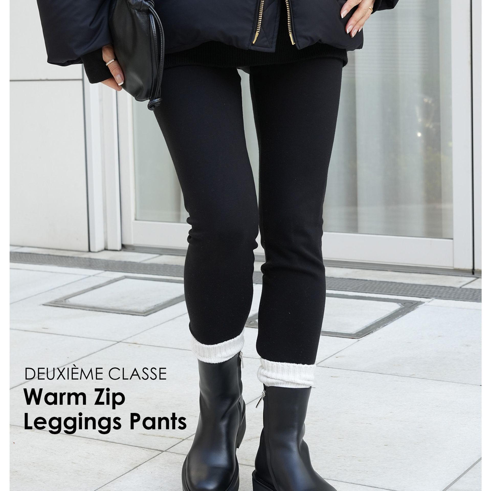 首元まで暖かいスタンドカラーや、アクセサリーいらずのゴールドファスナー、袖口の指ぬき付きのリブなど、細かなディテールもポイント。