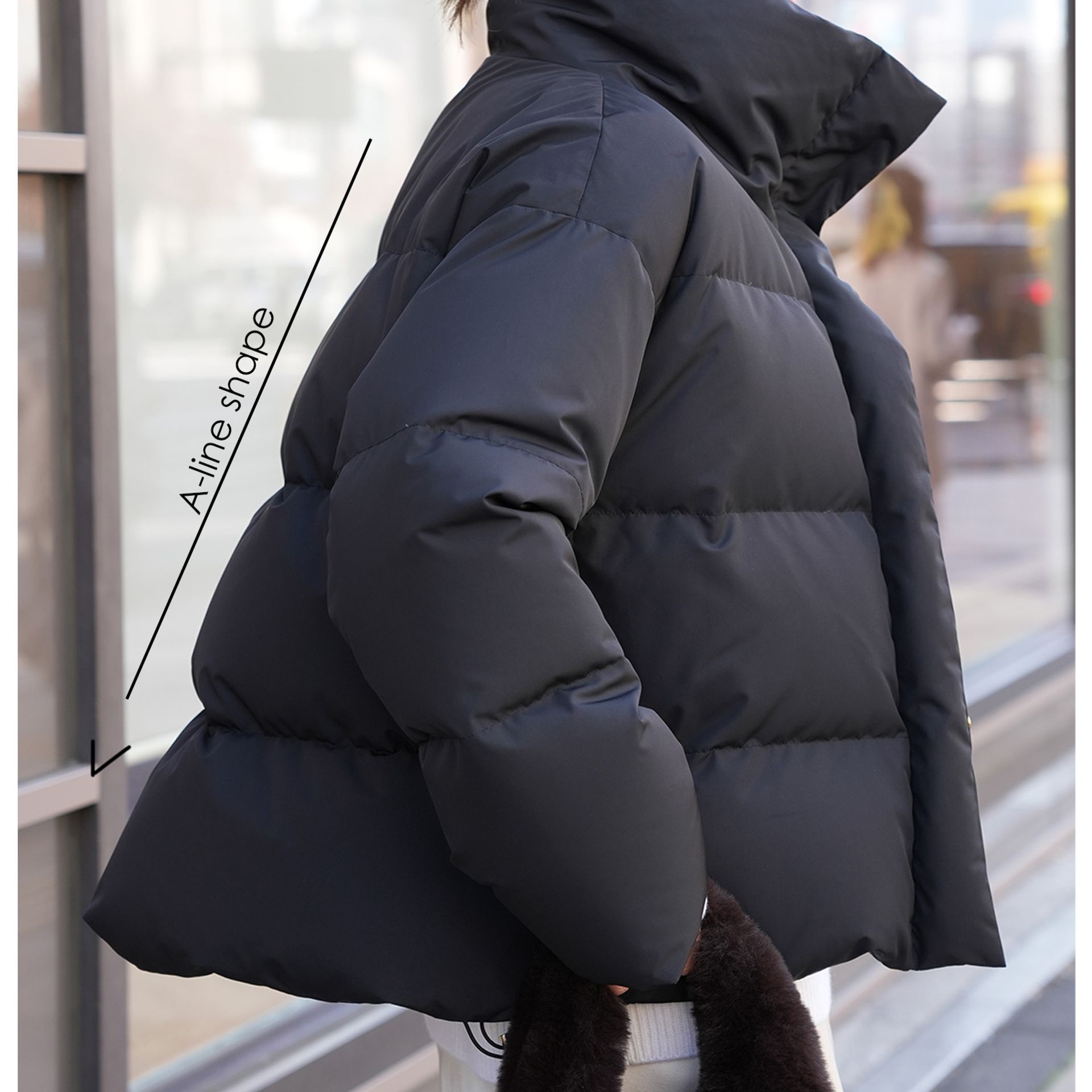 着丈が少し短く、AラインでスッキリしたシルエットのShort Down Jacketなら、幅広いボトムスに合わせやすい。