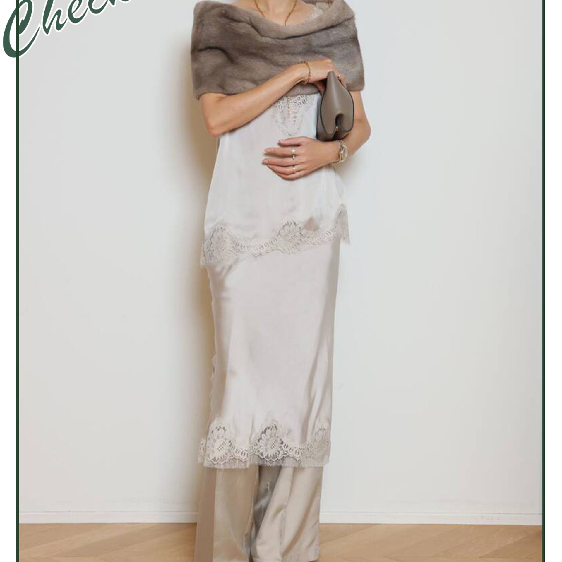 なかなかない色味や、レースとの組み合わせも素敵です。チープにならず、下着っぽく見えないのはデザイナーの力ですね。大人が外に着ていける、おしゃれなアイテムです。