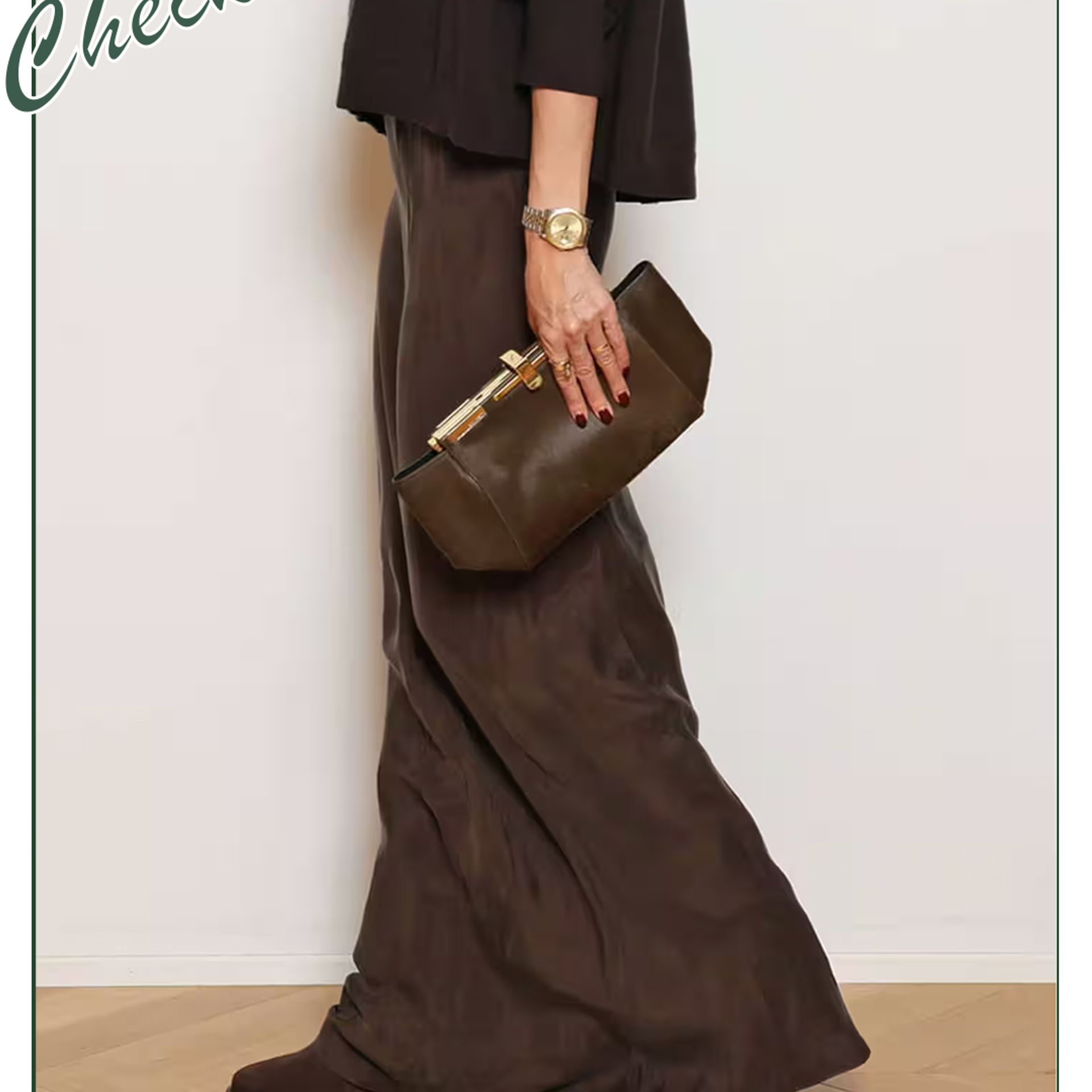 冬のアウターやニットスタイルにつやのあるテロっとスカートは重くならず抜けを出してくれる。