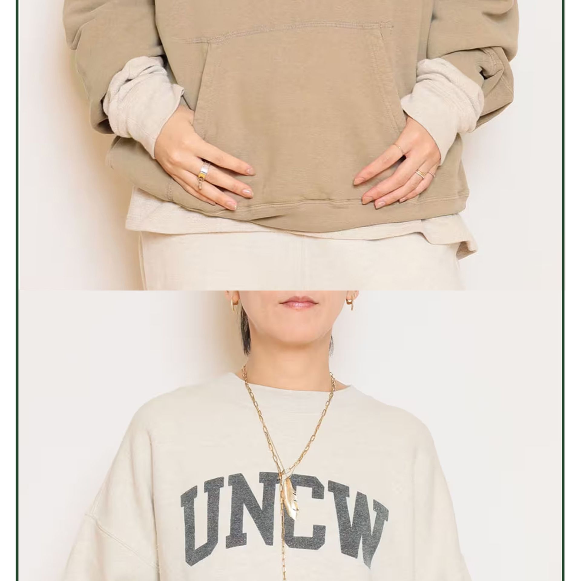 持っていない色のスエットが欲しいとなると、吟味することになるスエット類。なんとなく淡い色でコーディネートしたいと思いキャメルのパーカーに決めました!ローレンのガウンや生成りのスエットにも合わせたいです。