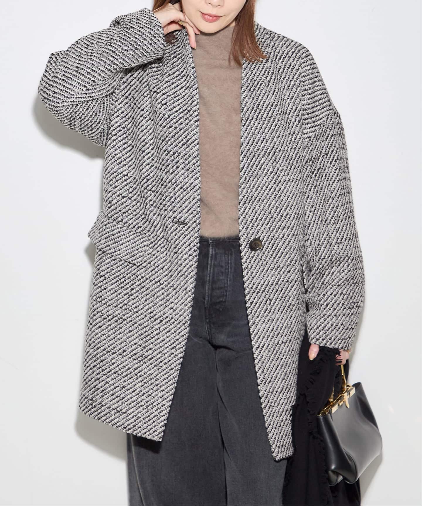 少し大きめでゆったりとしたチェスターコート。