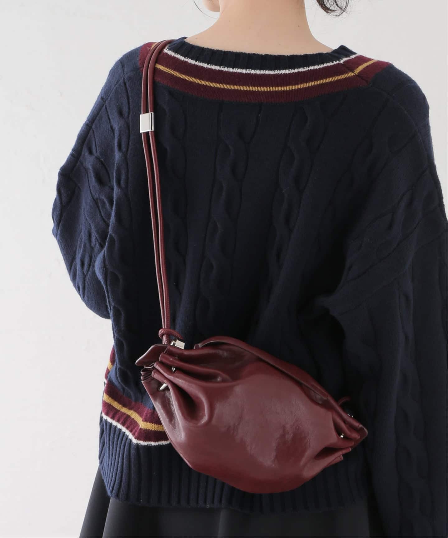 小物はボルドーカラーで統一してトレンド感のあるスタイリングに。