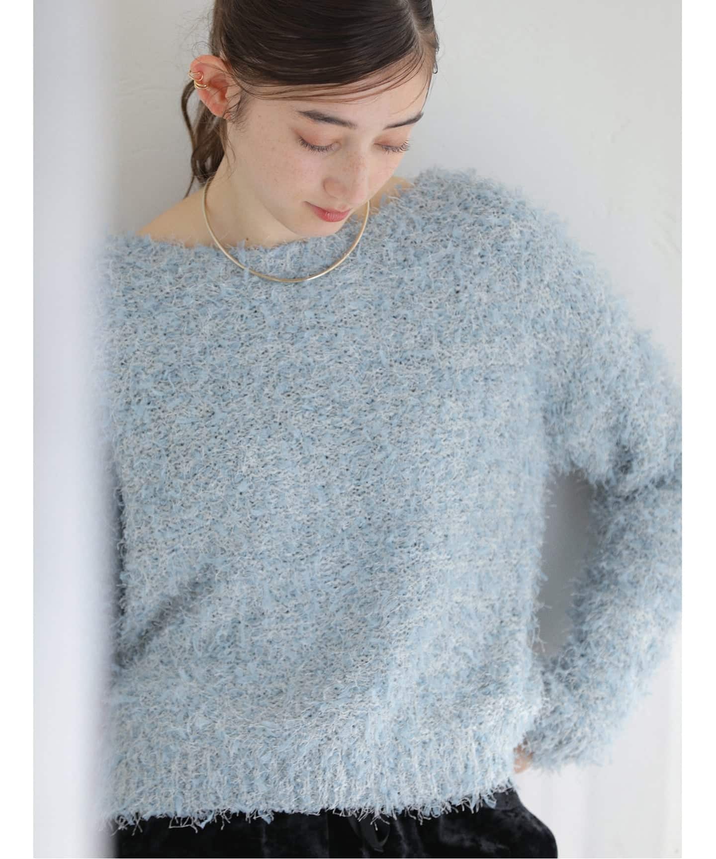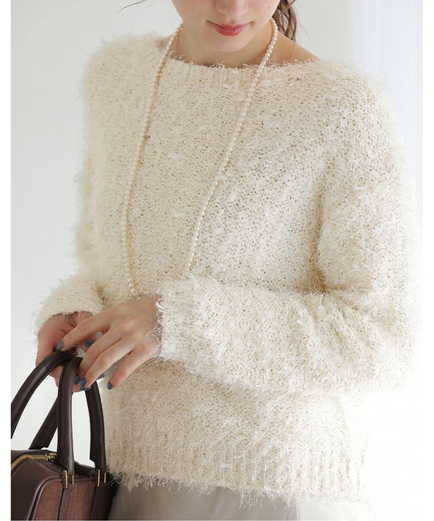 ふんわりとしたファンシーヤーン特有の表情が魅力のニットプルオーバー。