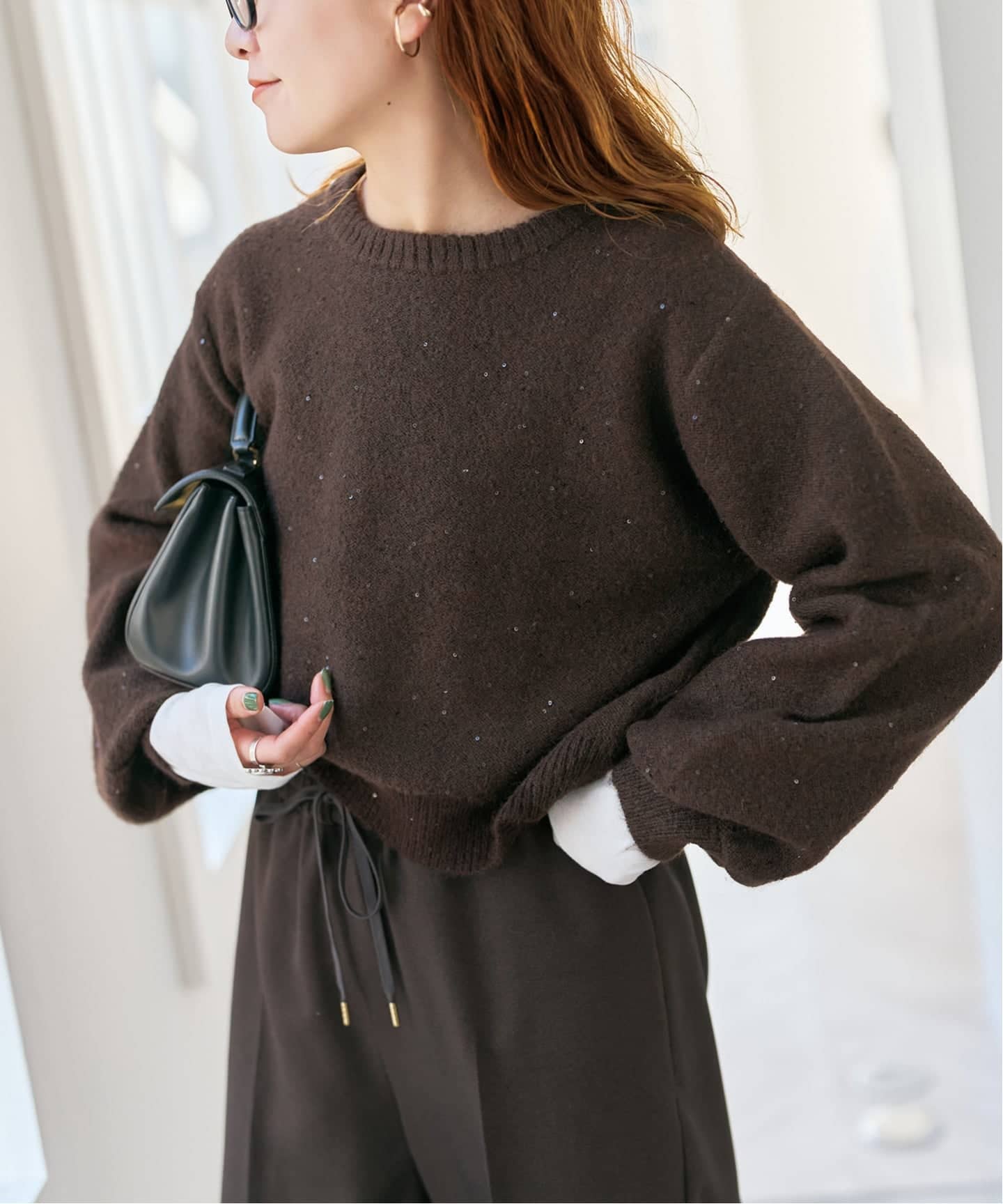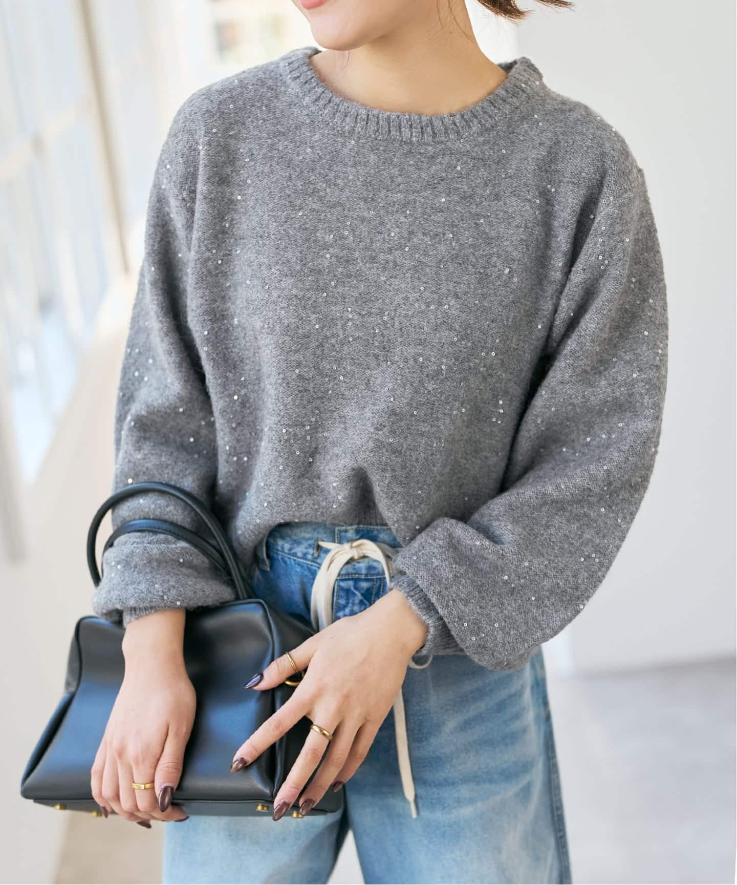 人気のニットが追加!小粒のスパンコールがさりげなくきらめくショート丈ニット。コンパクトなシルエットでボトムとのレイヤードも楽しめ、ホリデーシーズンのカジュアルコーデにもパーティースタイルにも活躍する一枚です。