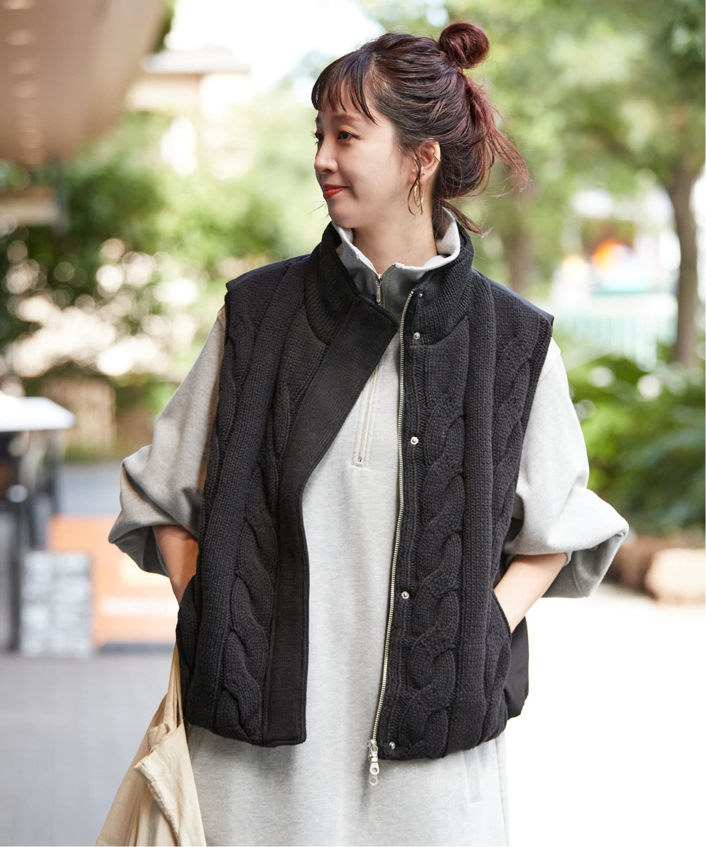 ドッキング仕様でベスト感覚とアウター感覚、どちらでも使える2way感が魅力の異素材コンビベスト。