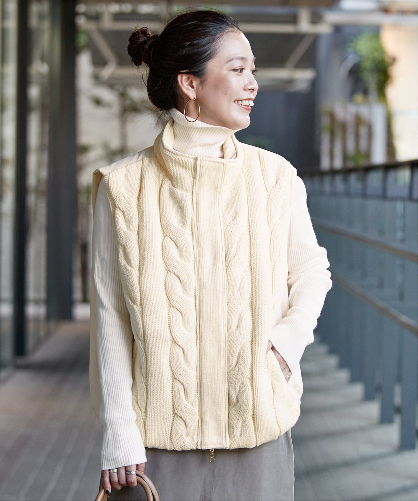 中綿入りで軽くて暖かく、アウターに重ねてももたつかない設計で冬のレイヤードスタイルを楽しめるアイテムです◎