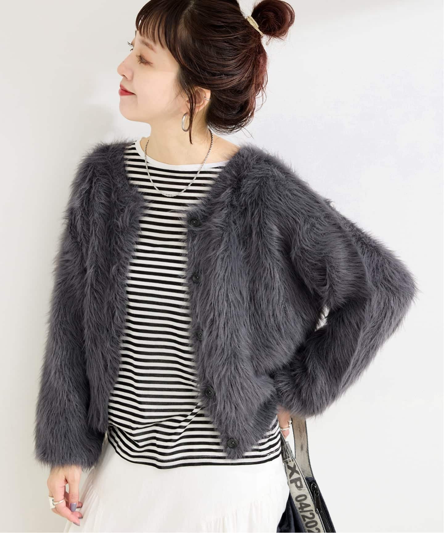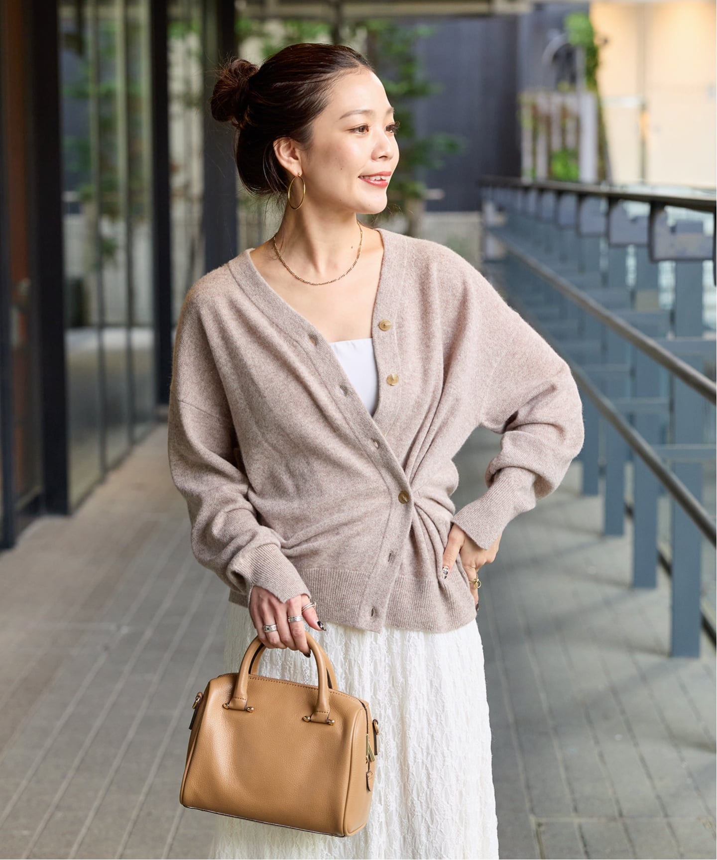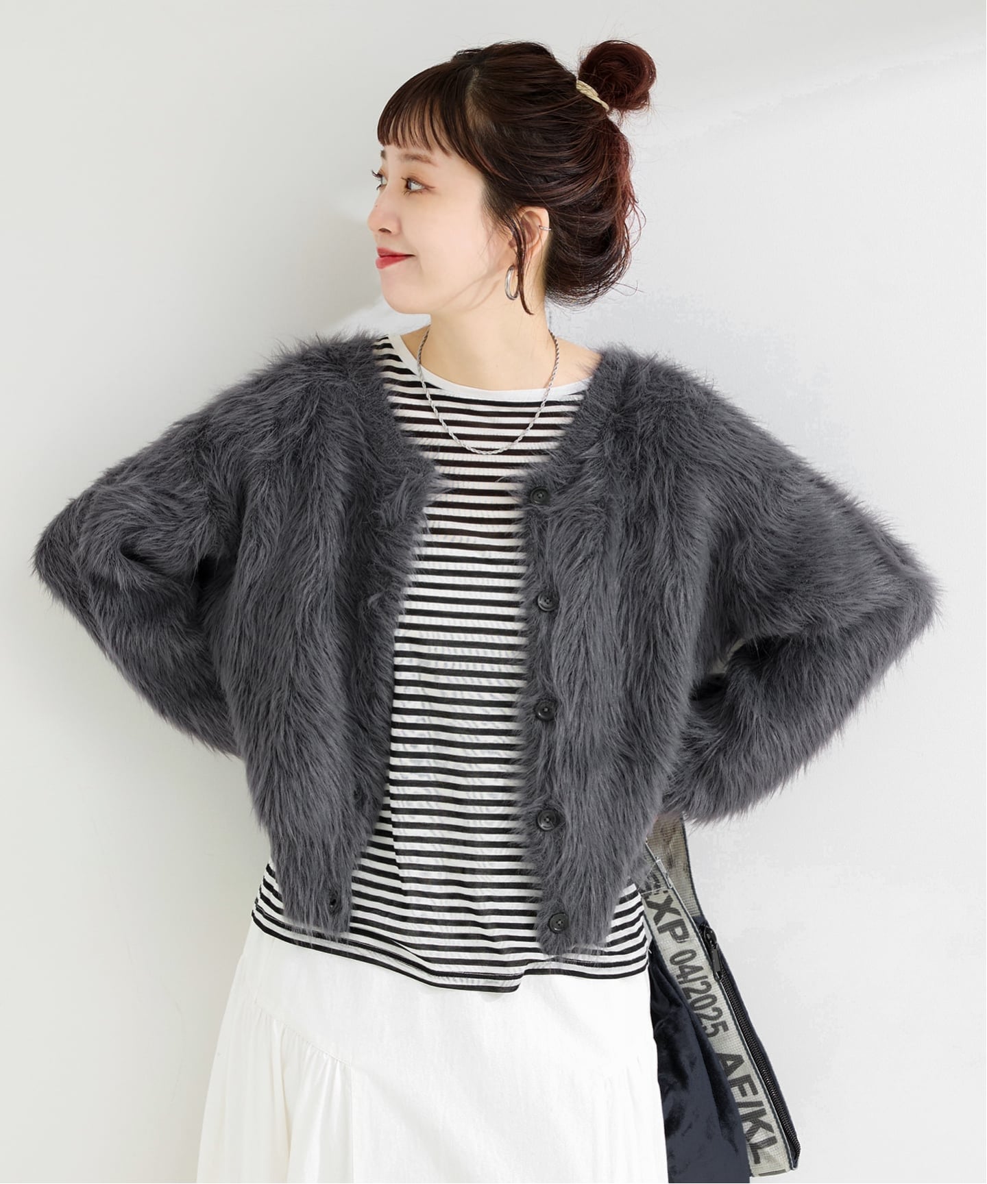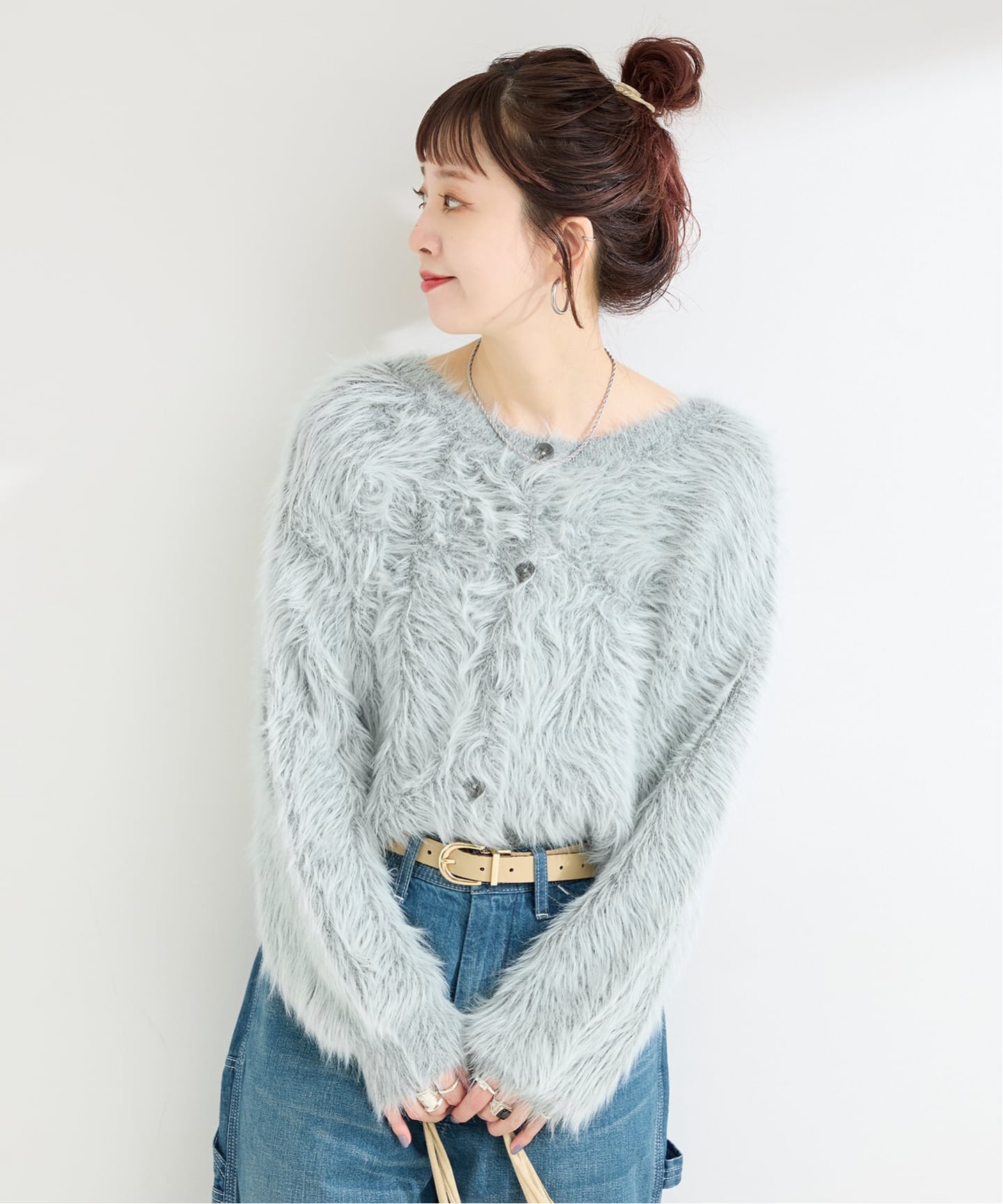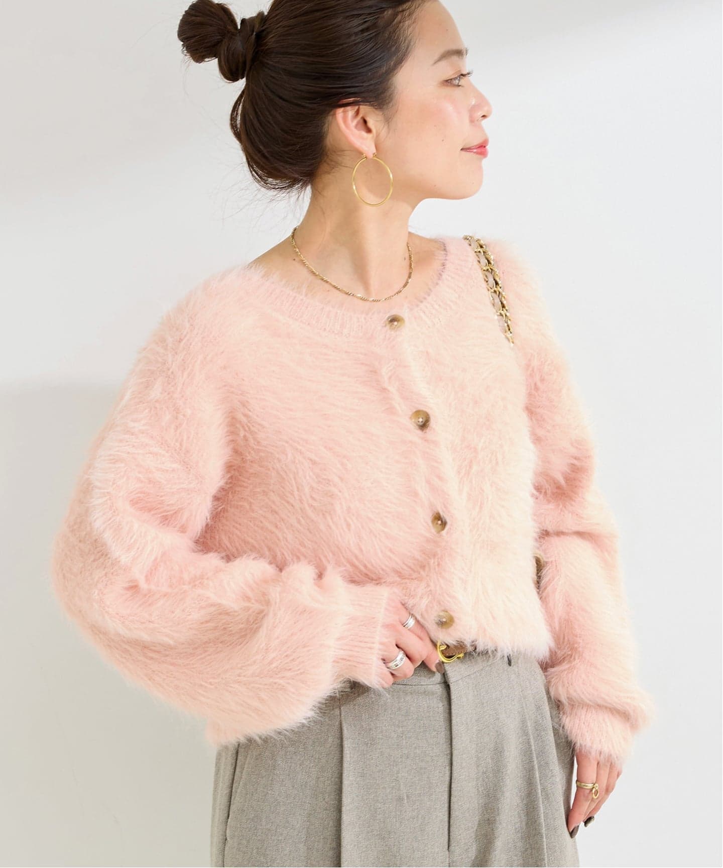 ふんわりとしたフェザーヤーンが柔らかく女性らしい表情の人気カーディガン。