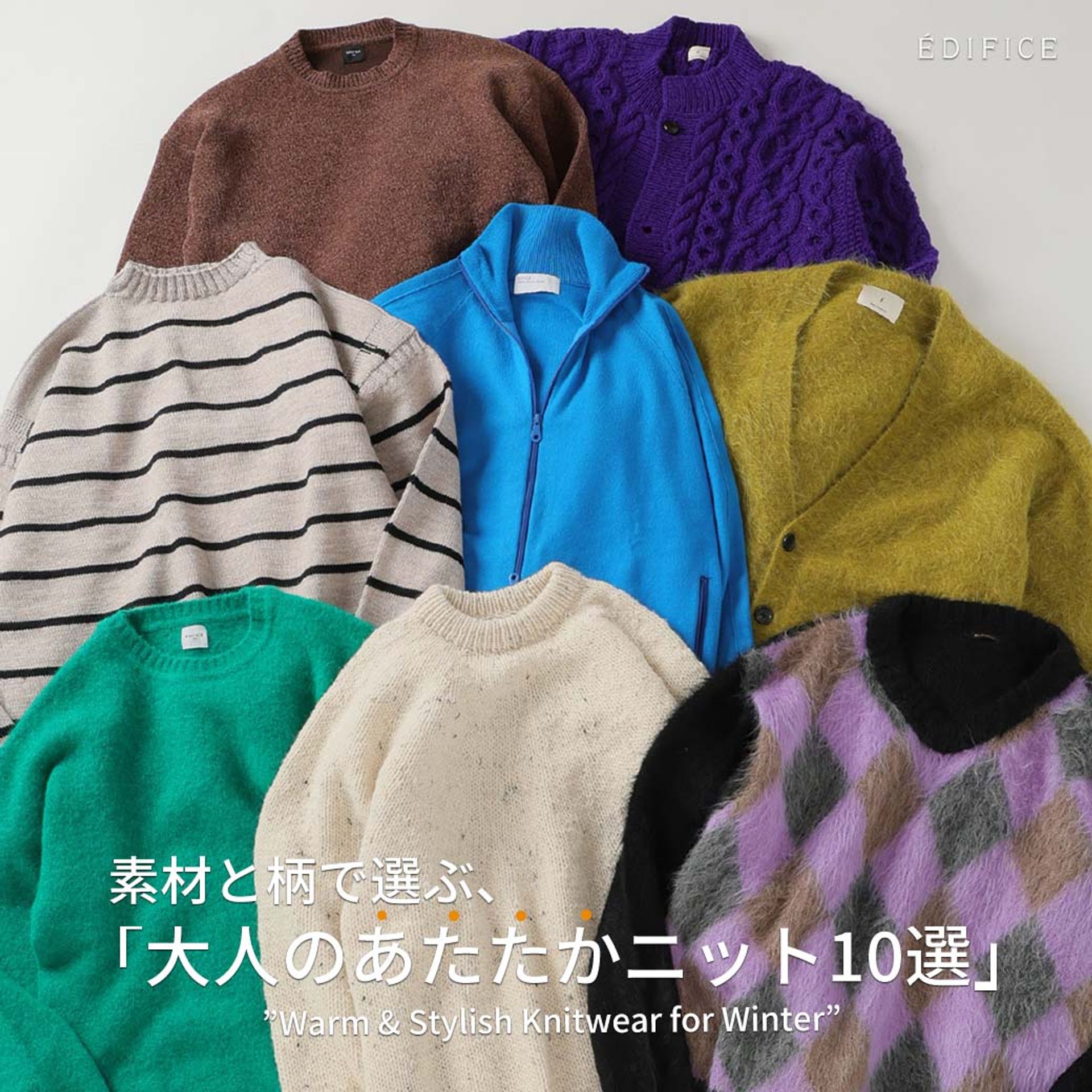 |上質な細番手のウールを採用した大人ムード感満載のエディフィス定番ハイゲージニット
