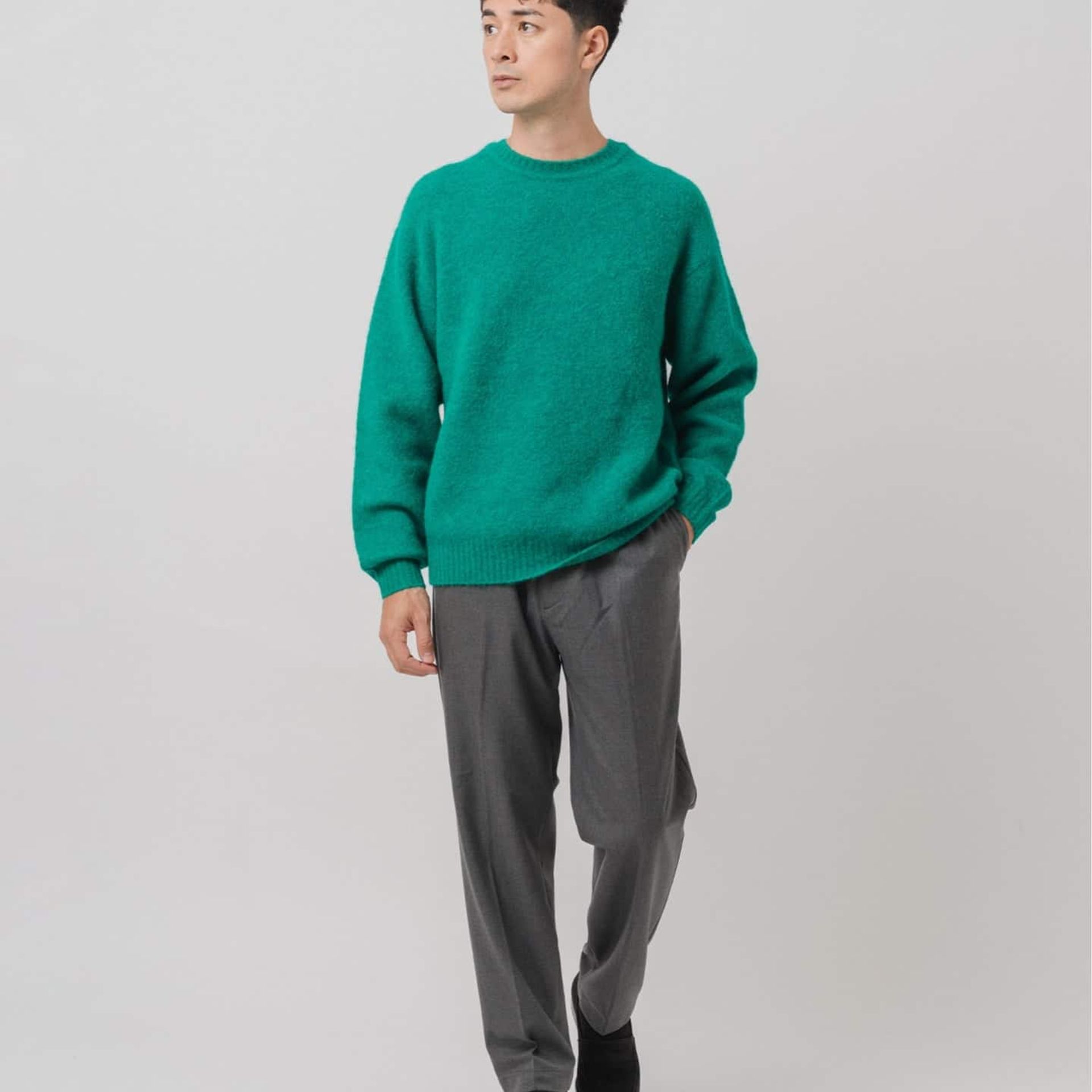 快適なストレッチ鹿の子素材による着心地の良さも魅力。ブラック・チャコール・グリーンのシーズンらしいカラー展開で、秋冬スタイルの主役として活躍します。
