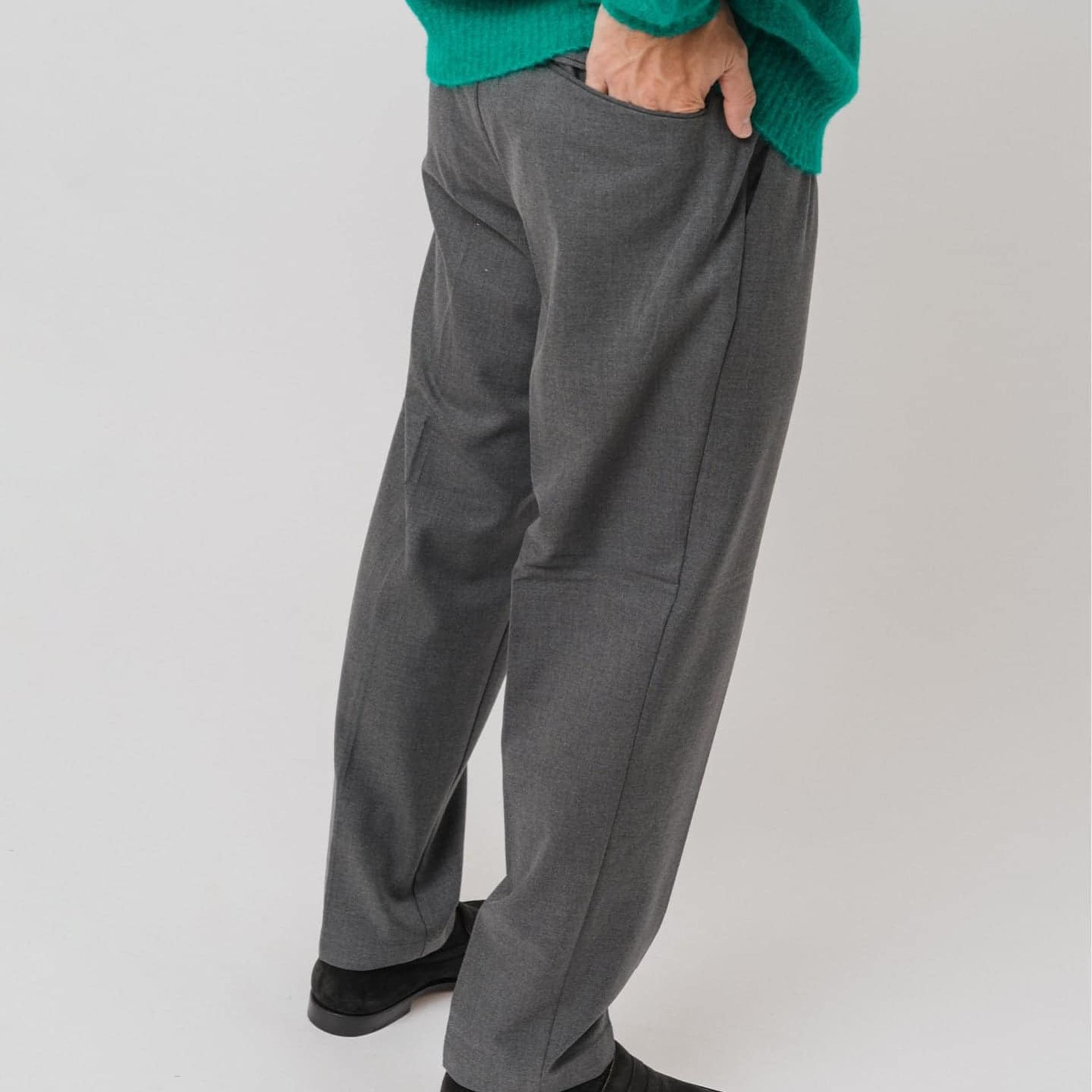 裏起毛の暖かさとストレッチ性を備えた上質素材を採用しているため、細身でもストレスを感じにくく、動きやすさも十分。洗練された細めのシルエットを求める方にこそ選んでいただきたい、頼れる一本です。