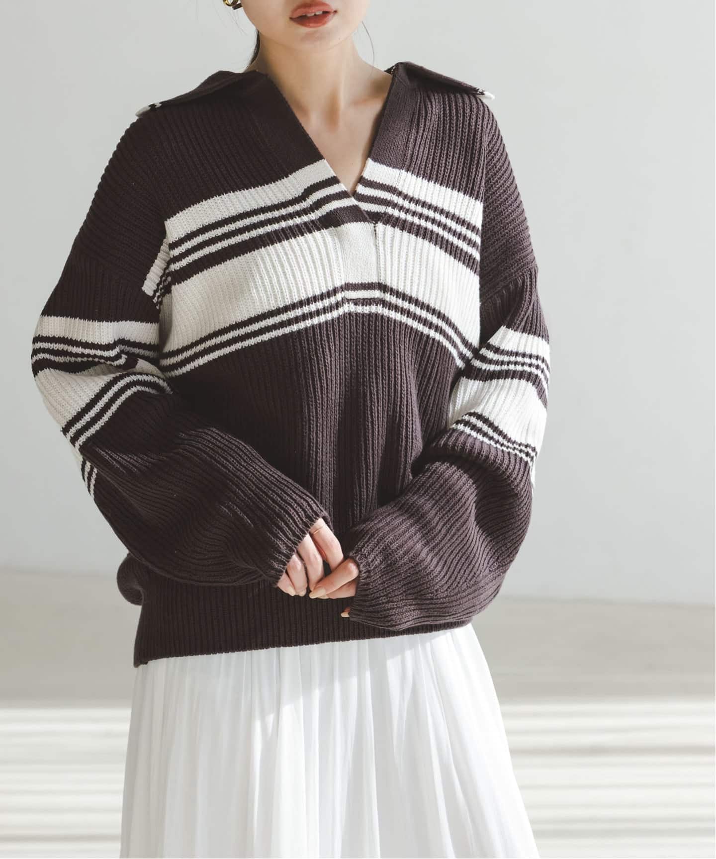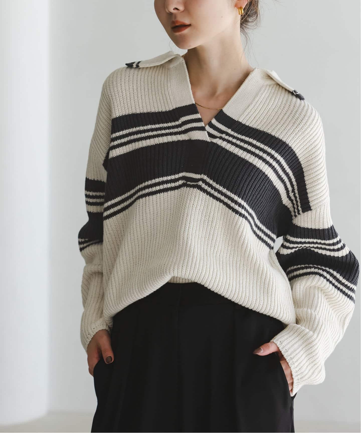 セーラーカラー&ランダムなボーダー柄が印象的な、プラスワンでトレンドスタイルが叶う1枚。