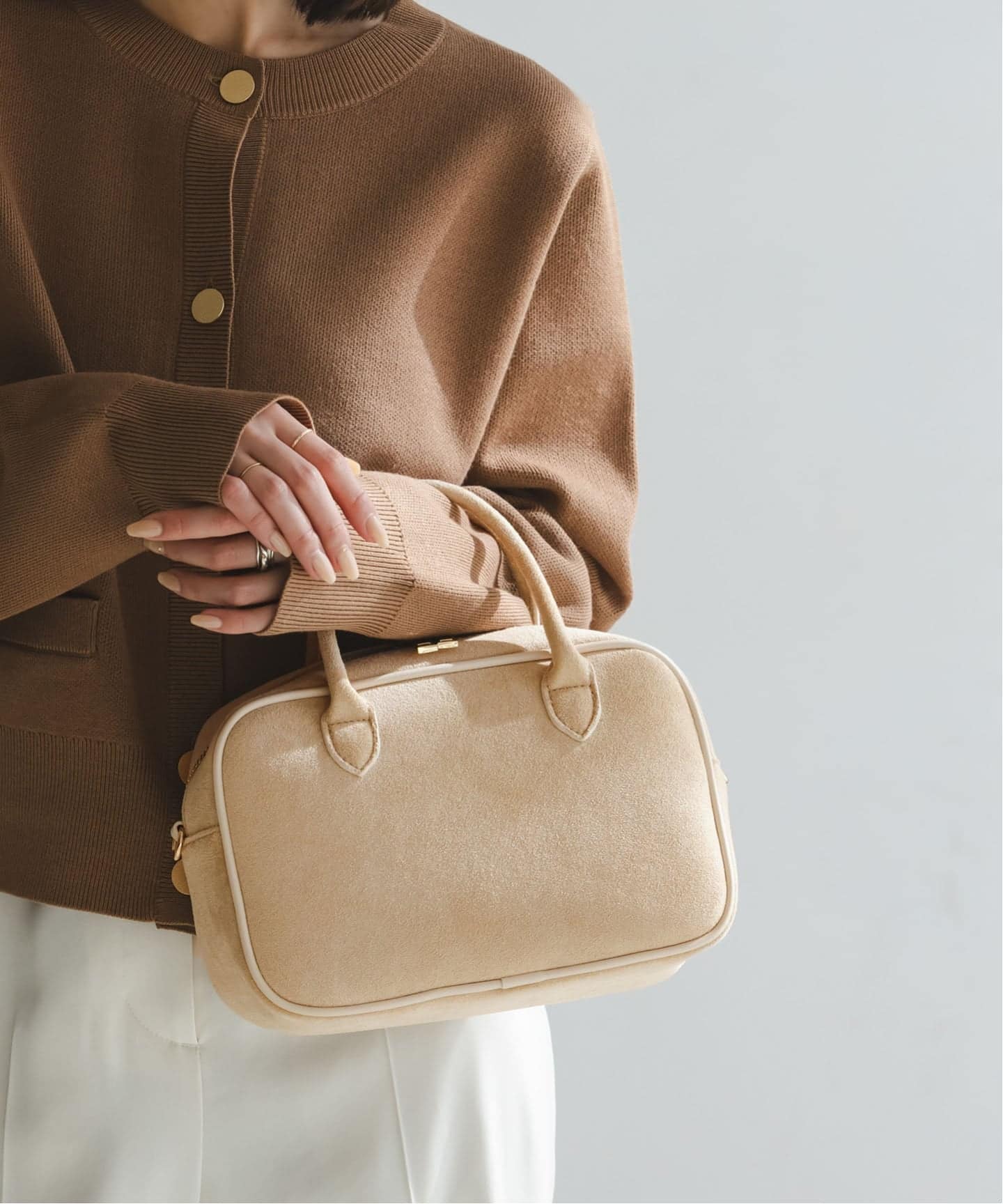 ほんのり起毛感のあるエコスエード素材とコロンとしたスクエアフォルムがマッチした、愛らしいルックスが魅力の1点。