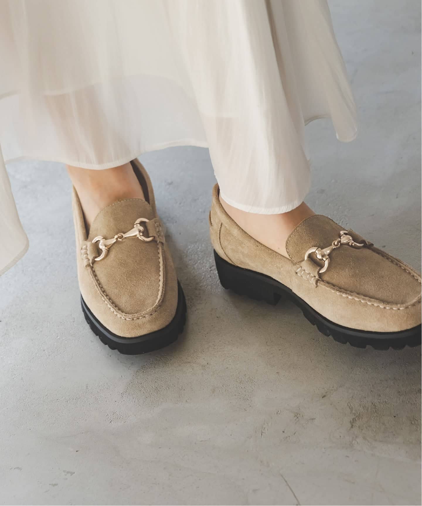 ビットモチーフを飾ったクラシカルなデザインを、微起毛のスエード素材で程よくカジュアルダウン。