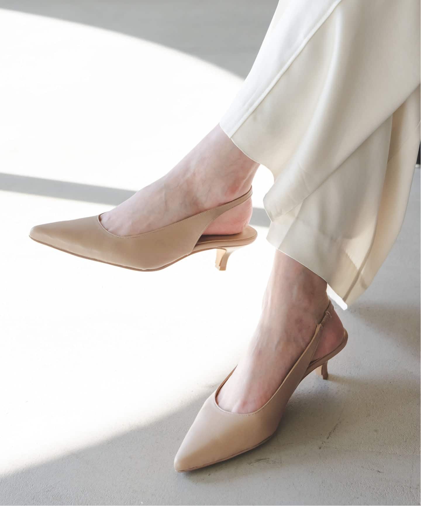 程よく尖ったポインテッドトゥや素肌が覗くバックストラップなど、上品な印象を与えるアイデアもきちんとマークしています。