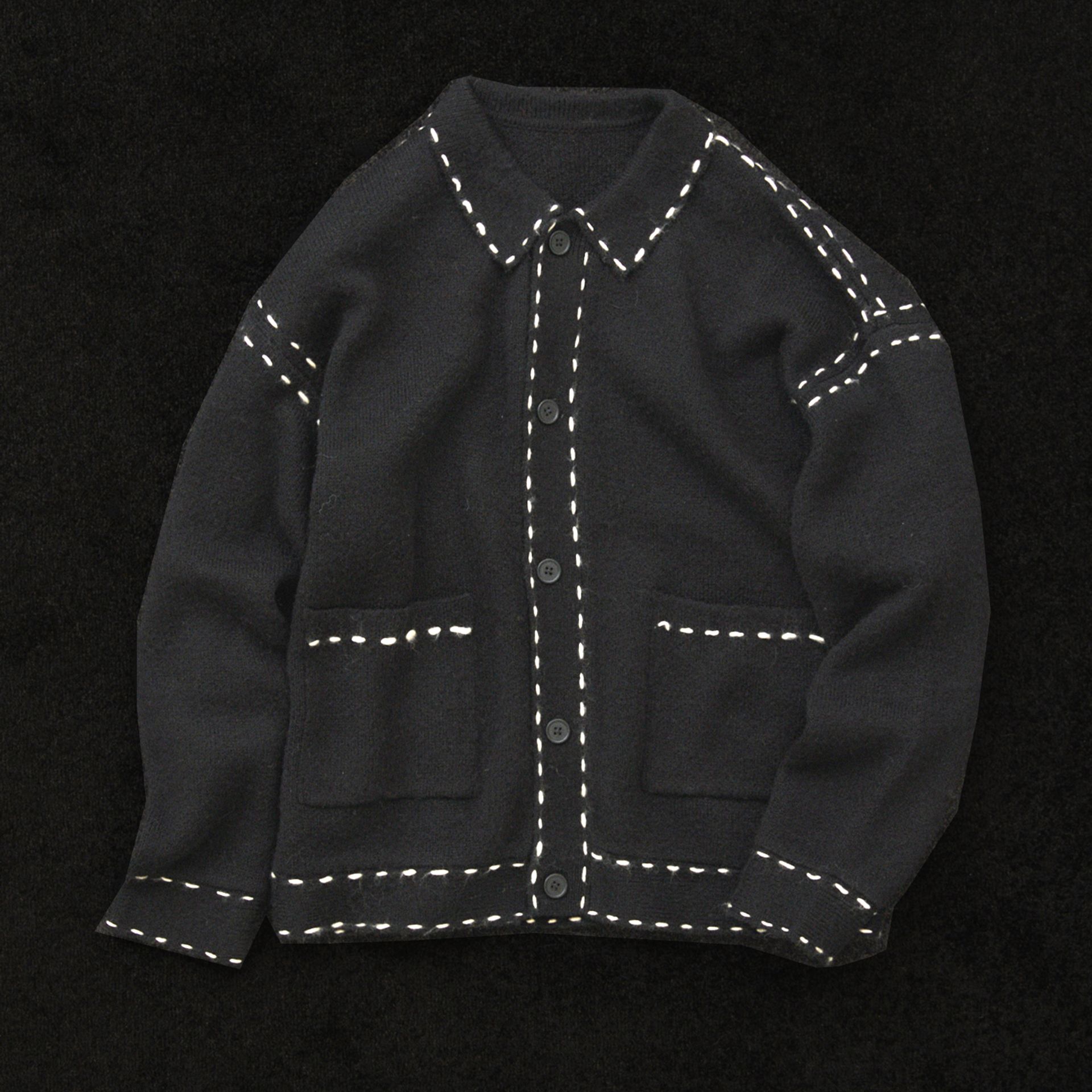 手作業のステッチが効いた、表情豊かなブラッシュドカーディガン。軽くてあたたかく、ふんわり柔らかな着心地が魅力です。
