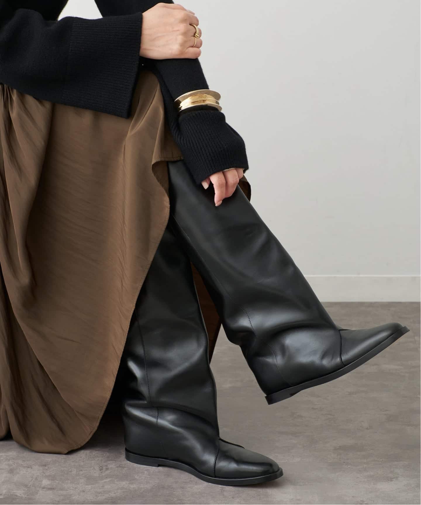 ブーツを覗かせてスタイルアレンジを楽しんで。