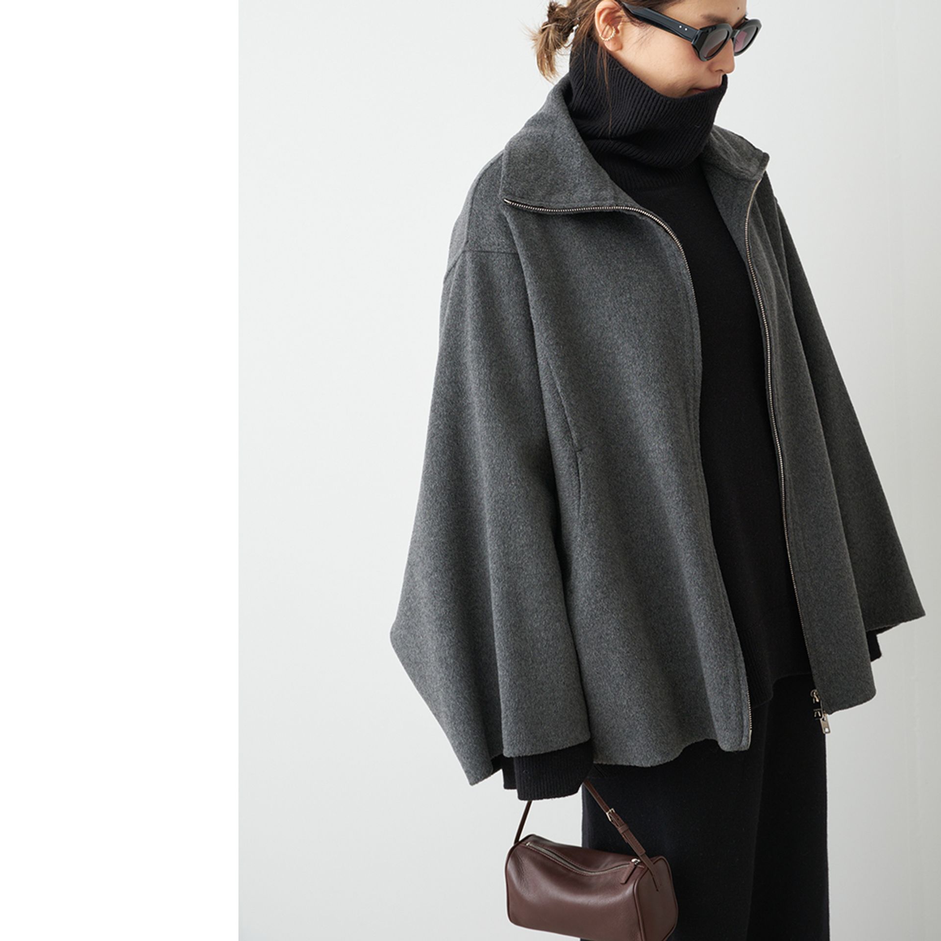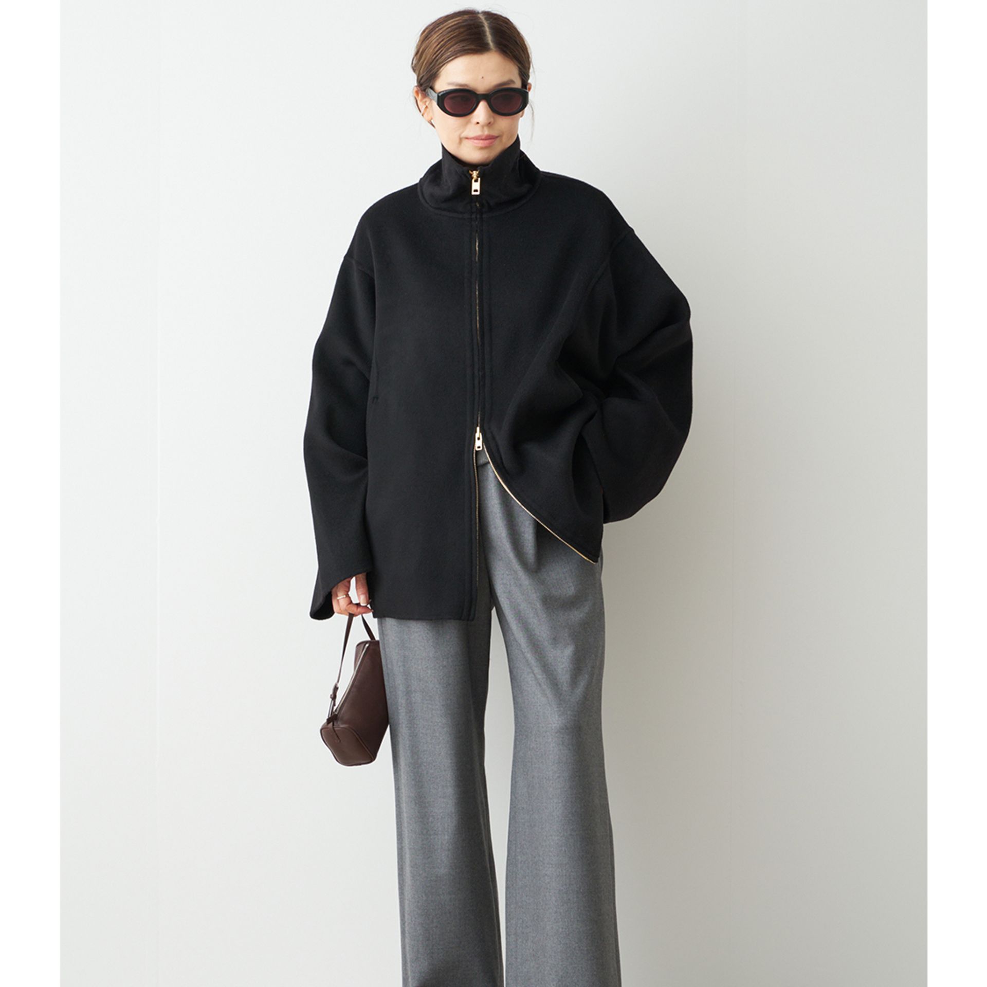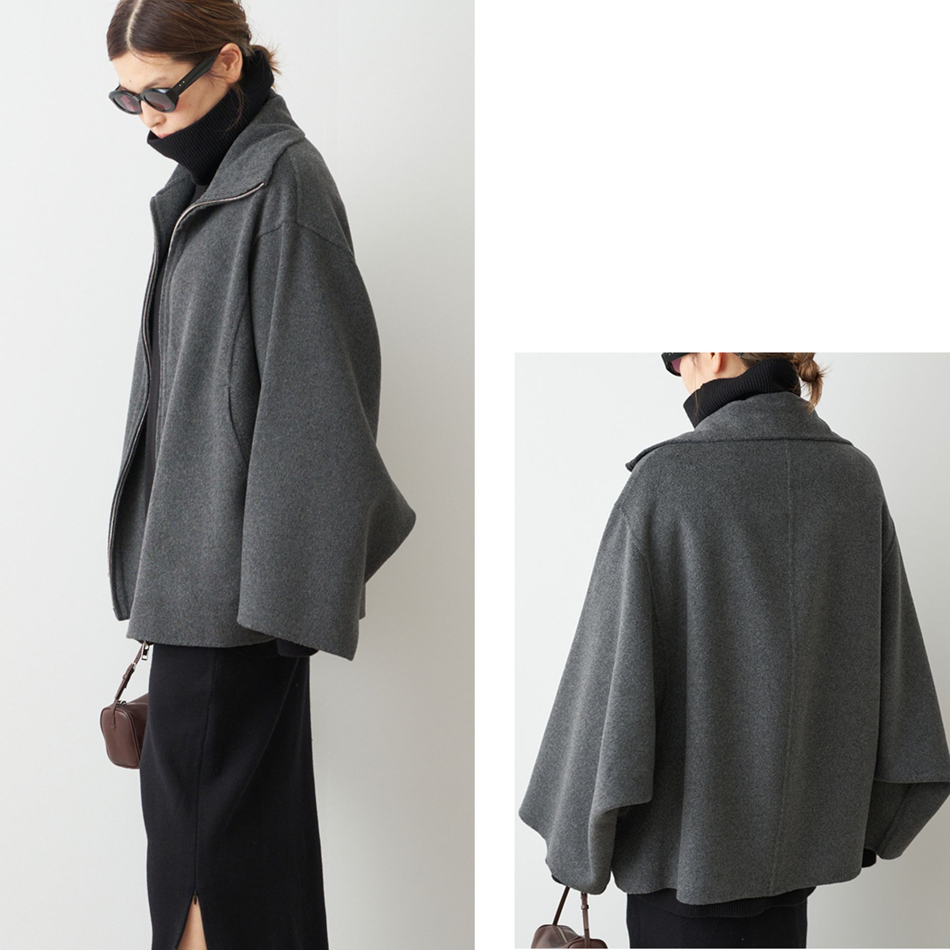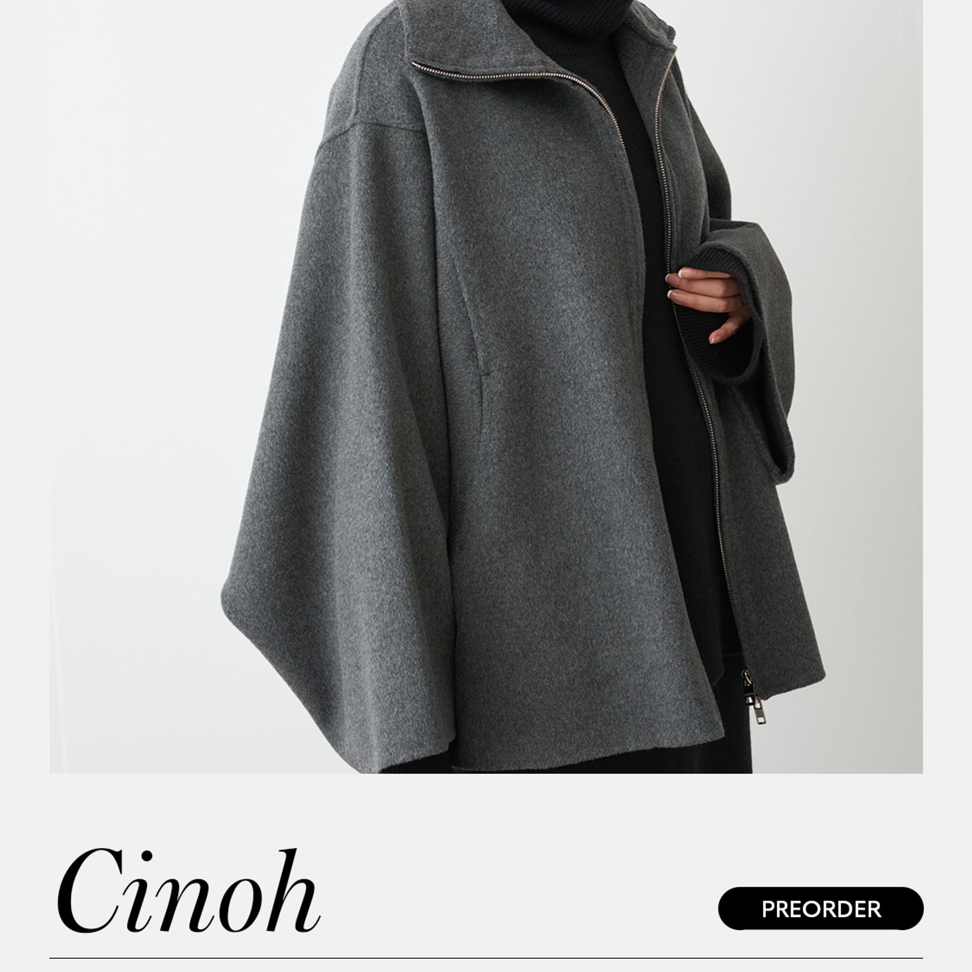 パーカーを羽織るようにラフに着て雰囲気が漂う構築的なCINOHらしいシルエット。