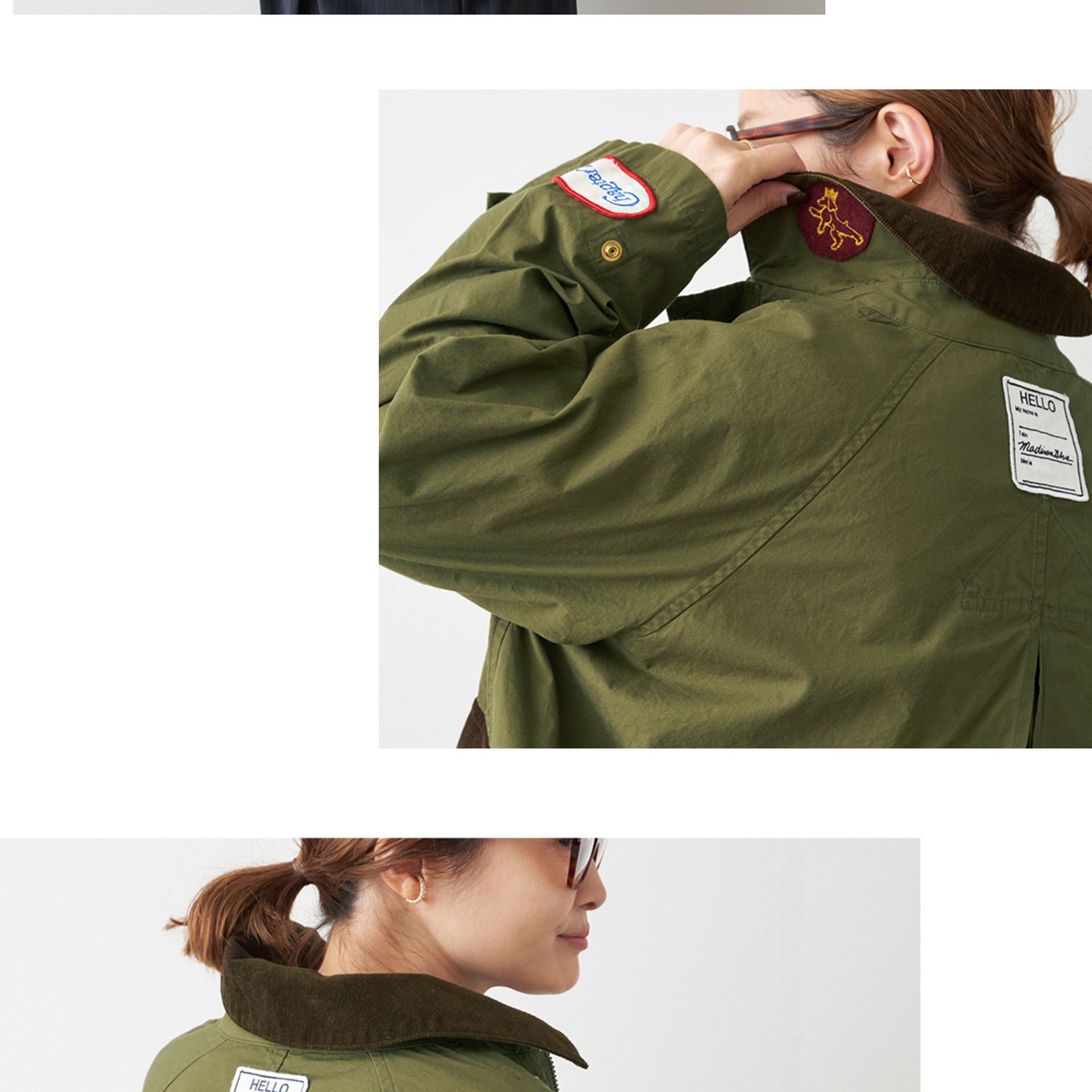 ハンティングコートをベースに、デザイナー中山まりこ氏がワッペンをアレンジ。