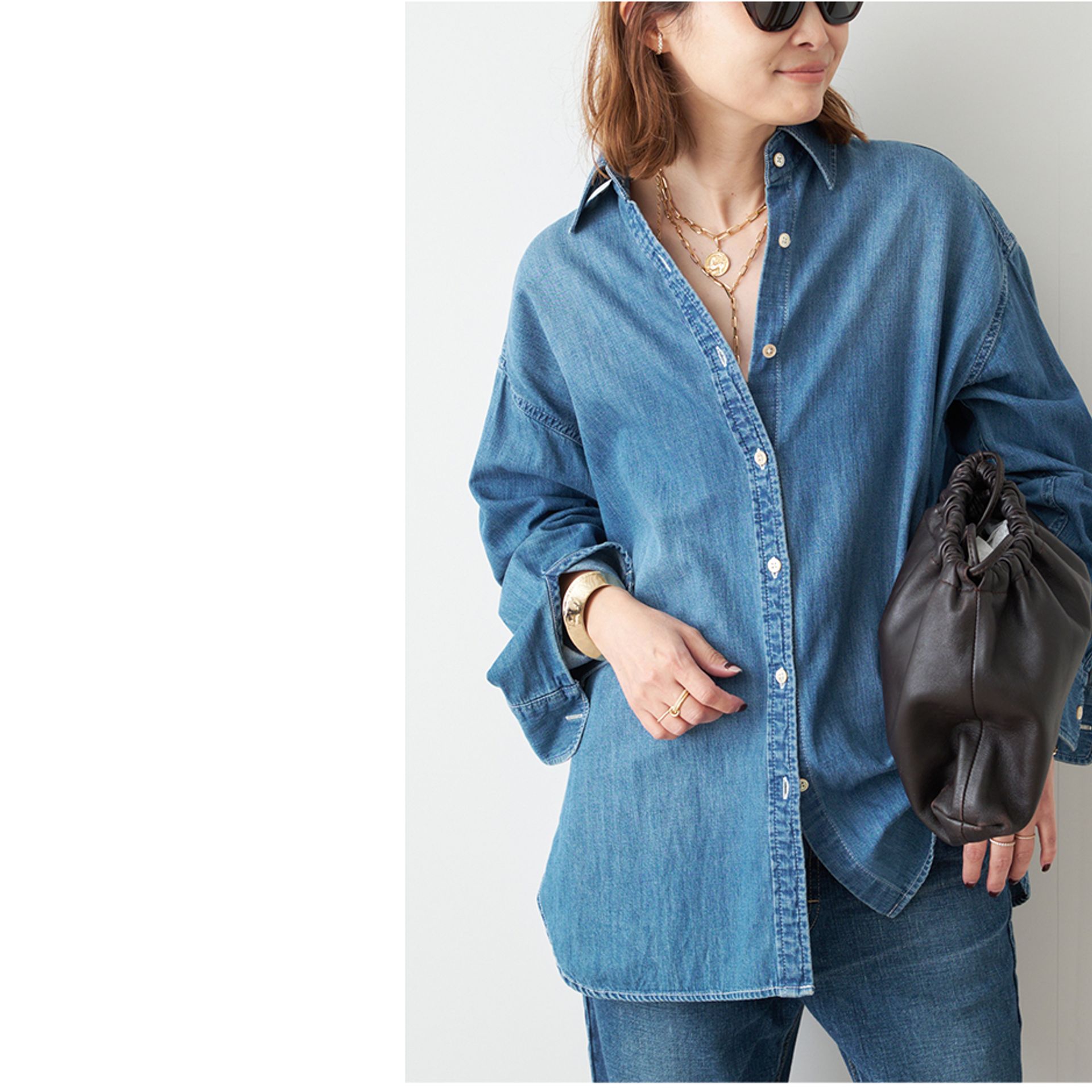 カジュアルなアイテムを纏うからこそ醸し出す女性らしい抜けや色気。