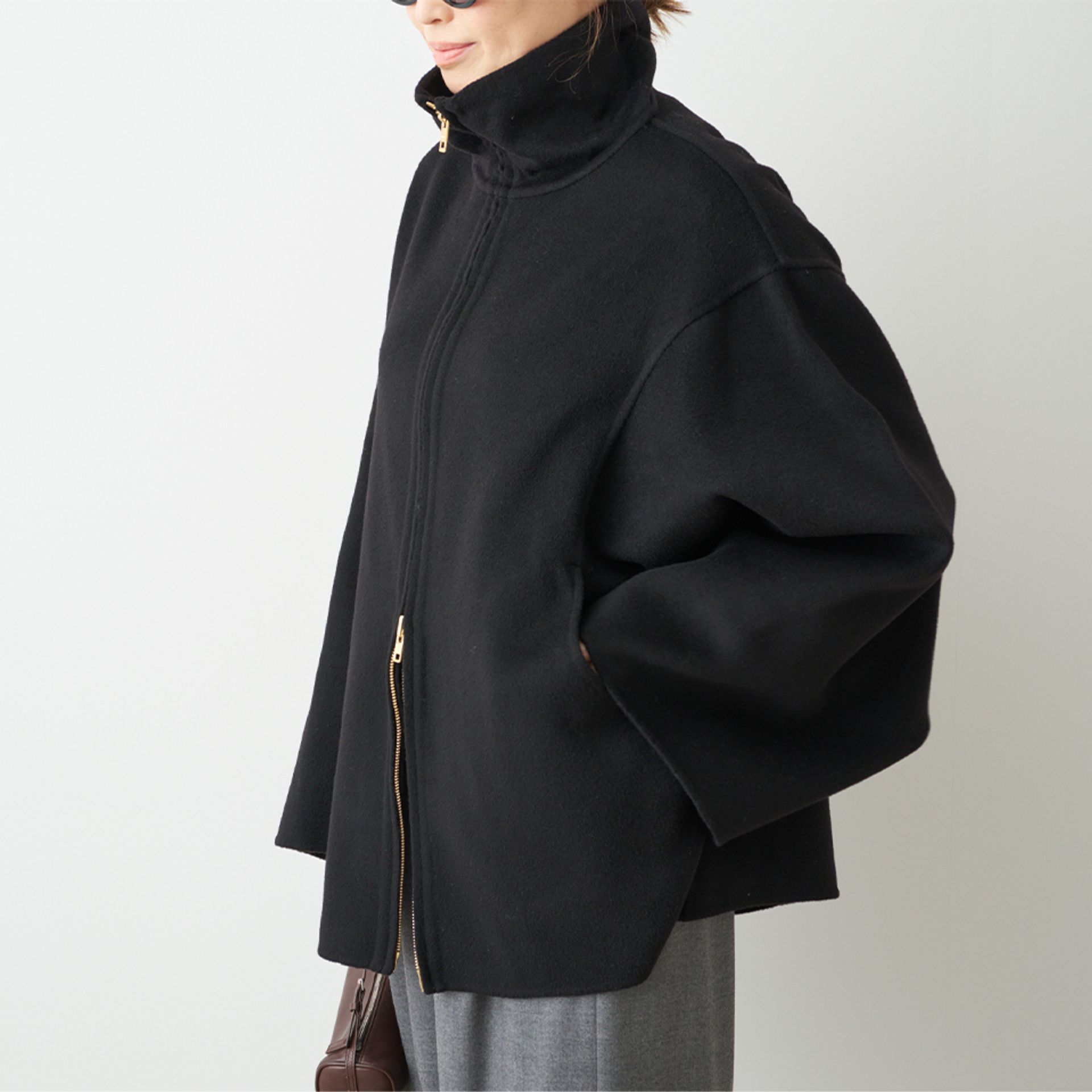 たっぷりの袖が独特のボリューム感と立体的なフォルムをつくり印象的なバランスに。