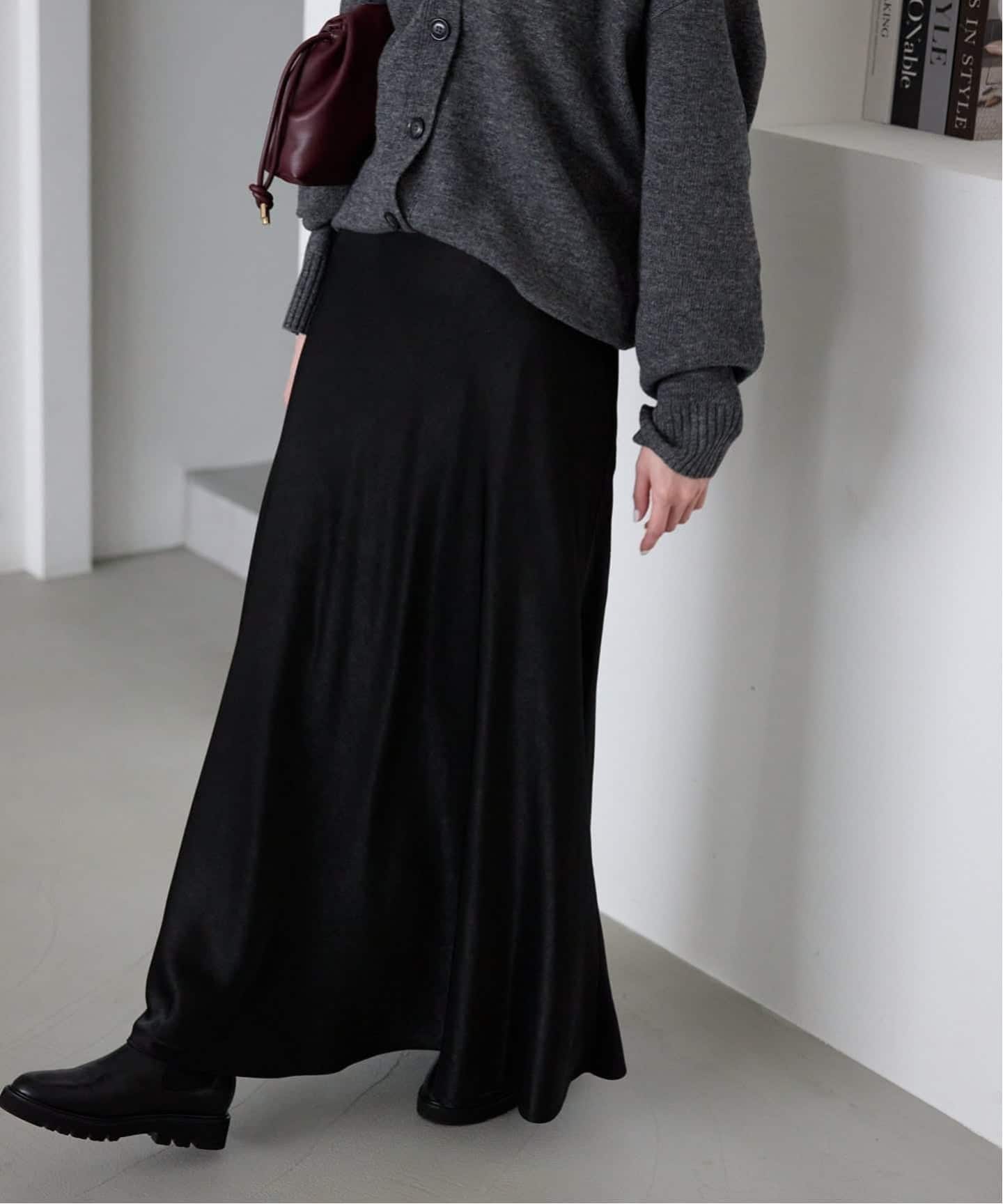 《ブラックのみWEB限定/追加2予約》グロッシーサテンフレアスカート
