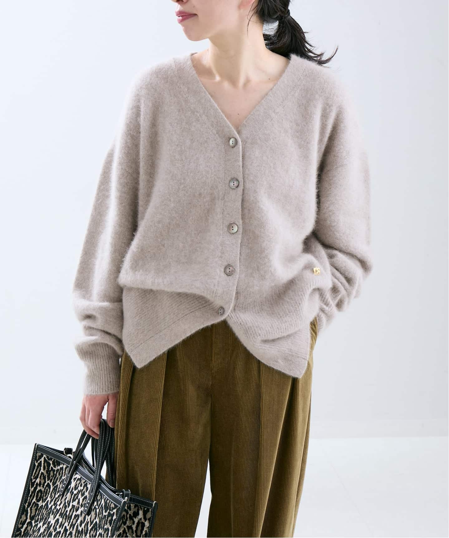|バイカラーボアカーディガン
