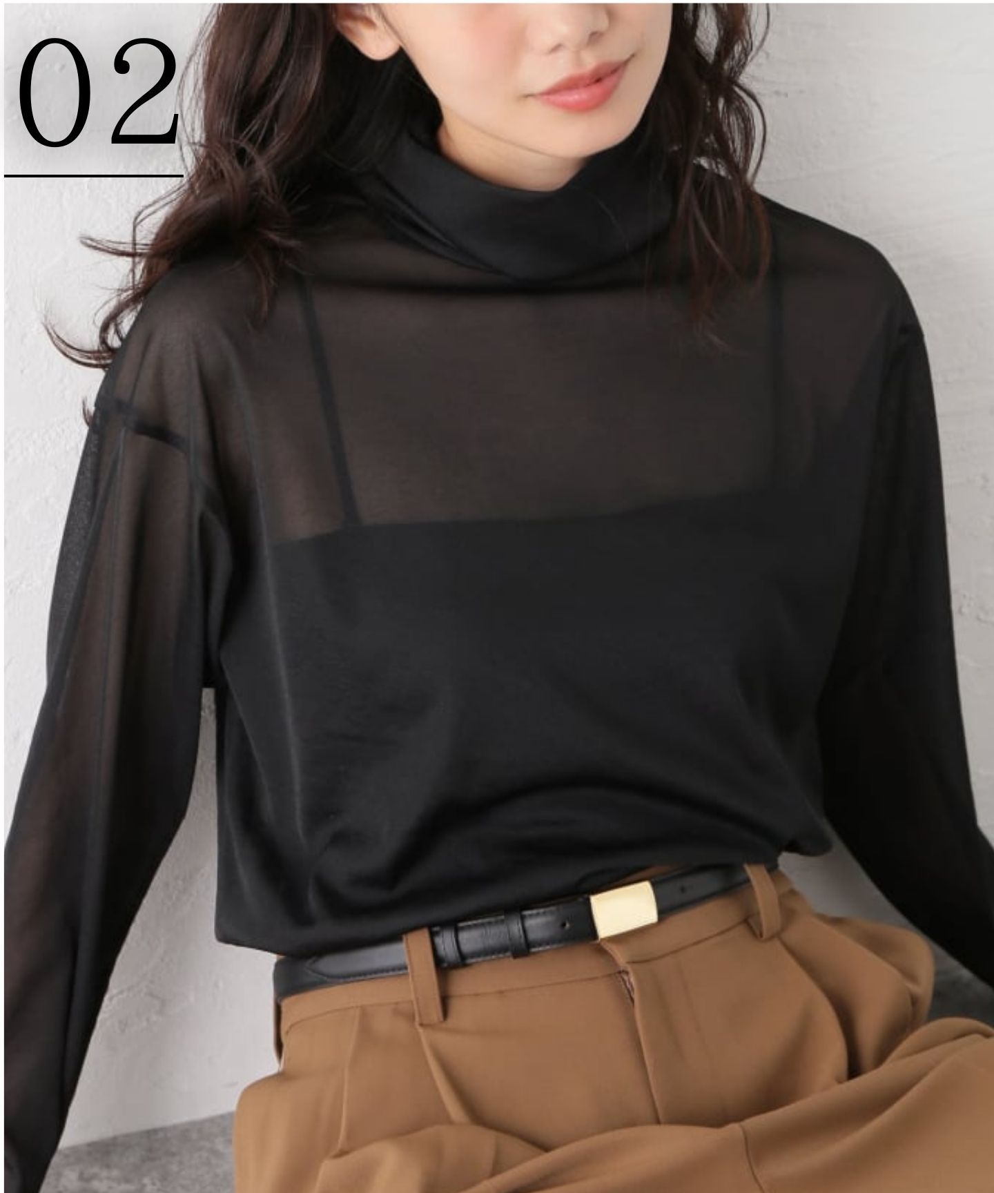 トレンドのシアー素材で長いシーズン活躍するタートルネックのトップス。初秋は1枚で透け感を楽しむコーディネイトができ、冬にかけてインナーとしてレイヤードも楽しめる優れもの!