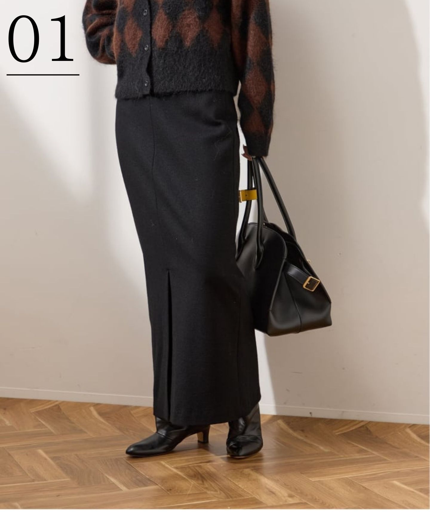 L'ESSAGEの名品スカート、LUMINARYウールスカート。すっきりとしたシルエットに柔らかなウールの風合いが豊かで着こなしをアップデート◎スリット入りで動きやすさも確保◎