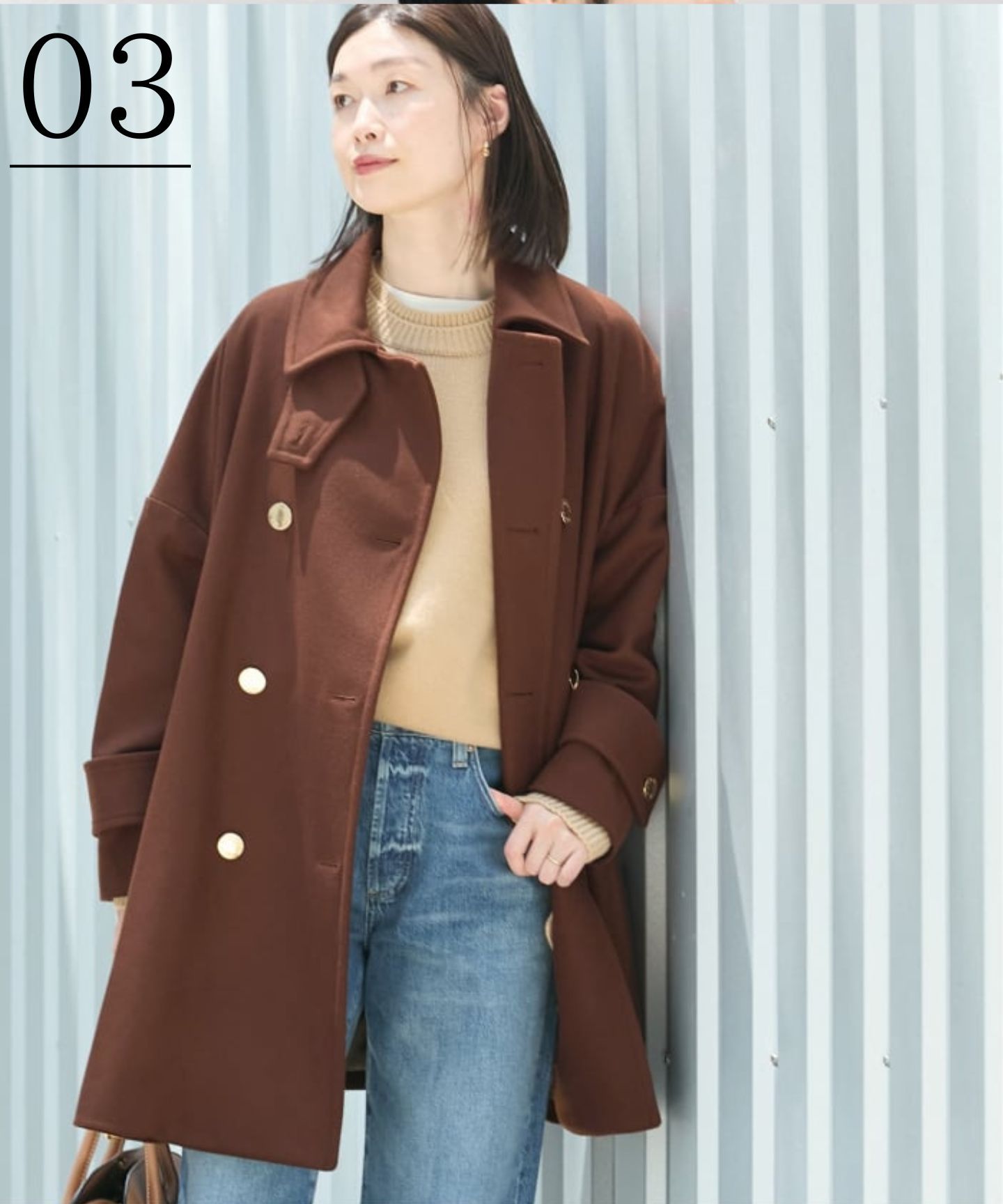 女性らしく美しい、Aラインシルエットの『HUMBIE』モデルをベースに、ダブル仕立てのPコート風デザインにアレンジを加えたL'ESSAGEだけのエクスクルーシブモデル。今年は新色のブラウンが加わり、4サイズ展開に。サイズ10はWEB限定サイズになります。上質な素材感としなやかな風合いで、綺麗めな印象の定番ウールメルトンを使用。バランスの取れた適度なウェイトで、メルトンでありながらコンフォートで軽い着心地となっています。MACKINTOSH刻印入りのゴールドボタンを6個配し、エレガントかつ重厚感ある佇まいのコート。チンタブ付きで、首元の防寒はもちろんの事、着方の変化も楽しめます。