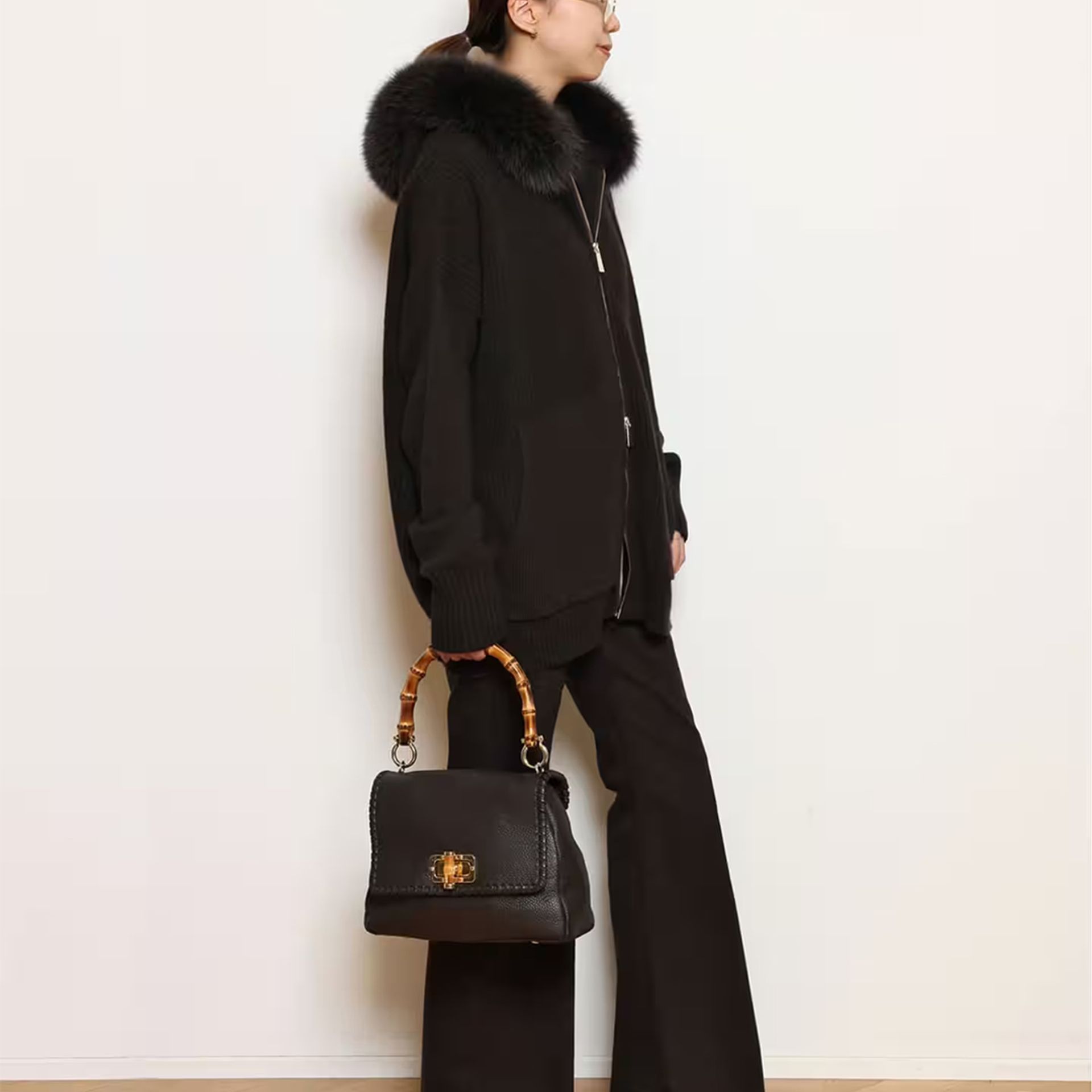 茶・黒・白の3色展開で、どのカラーもふわりとしたボリューム感がたまらなくチャーミング。