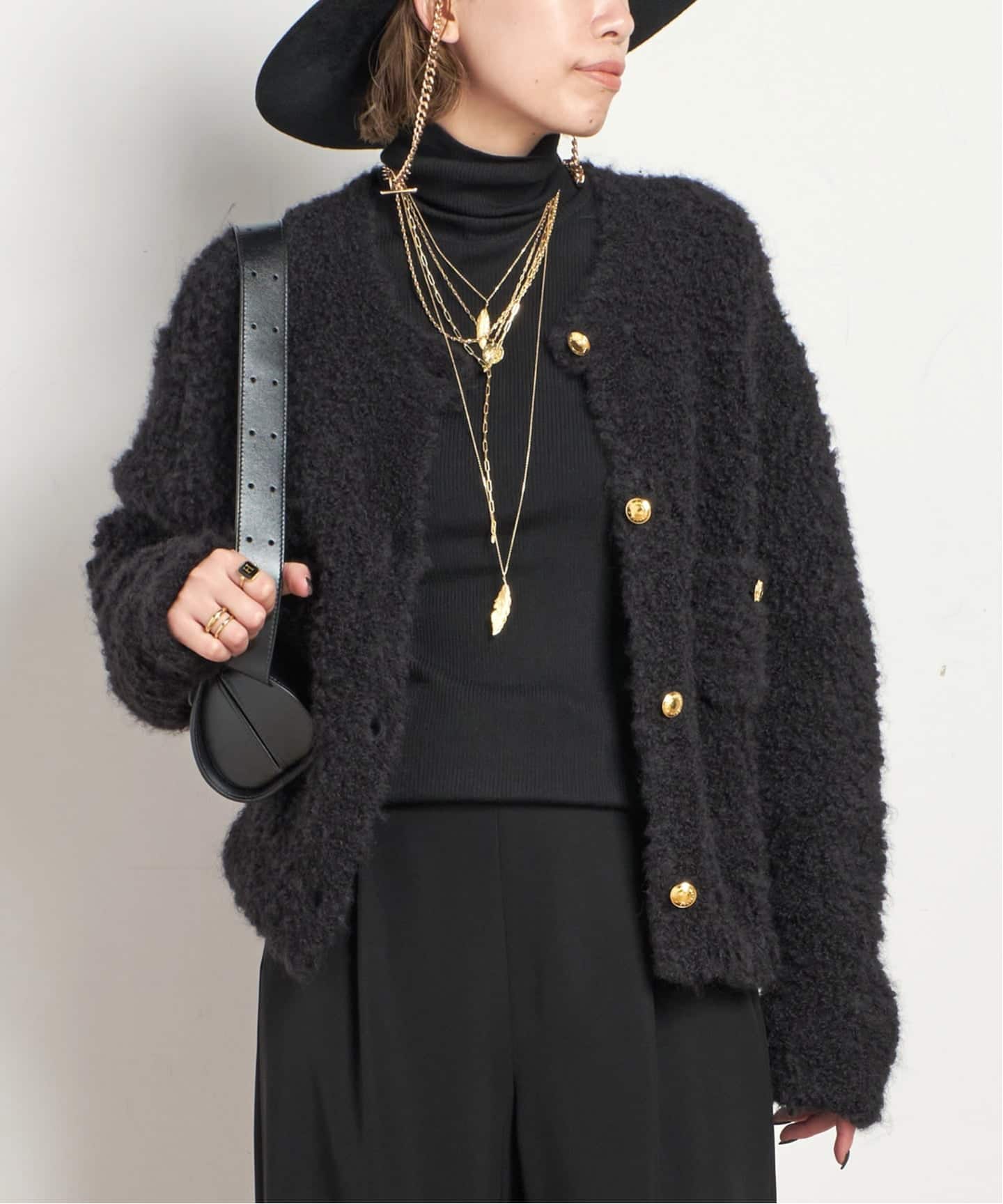 くるくるふわふわの編地が愛らしく、ニット素材なので堅苦しくなくカジュアルダウンして取り入れられるジャケットです。