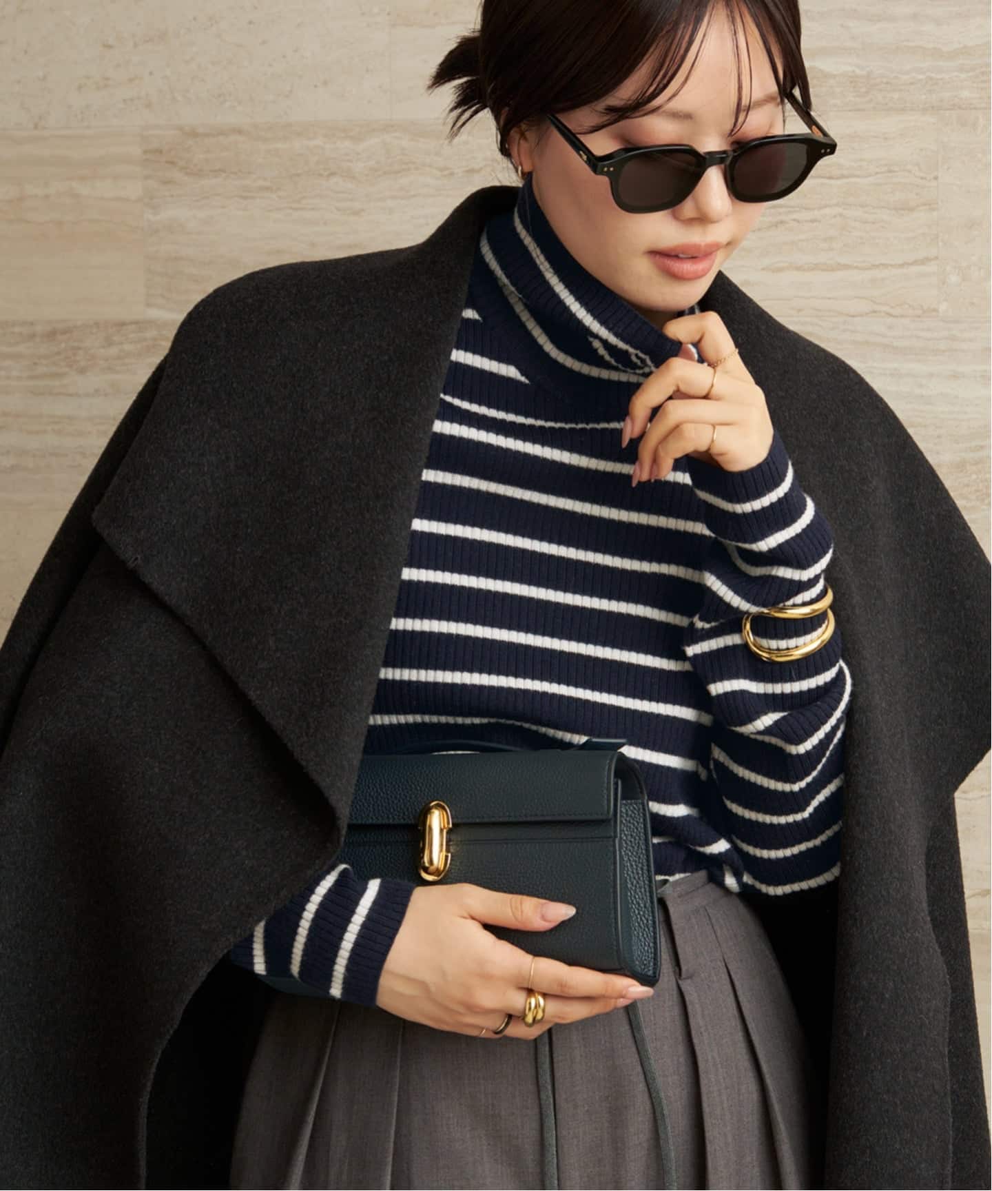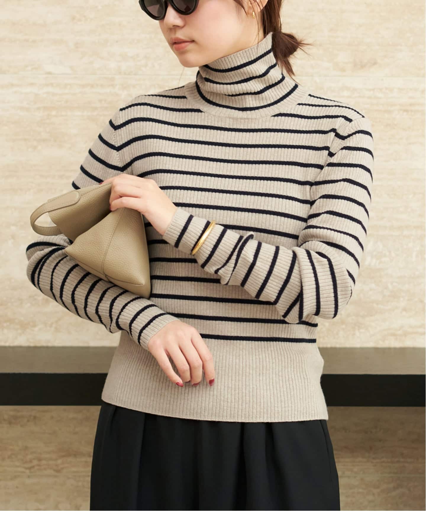 冬のカジュアルスタイルに取り入れたい、ボーダータートルネックニット。