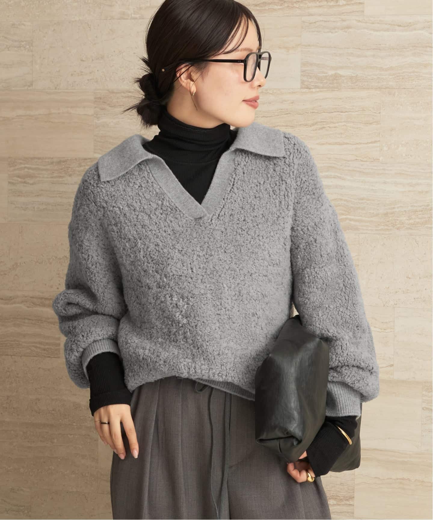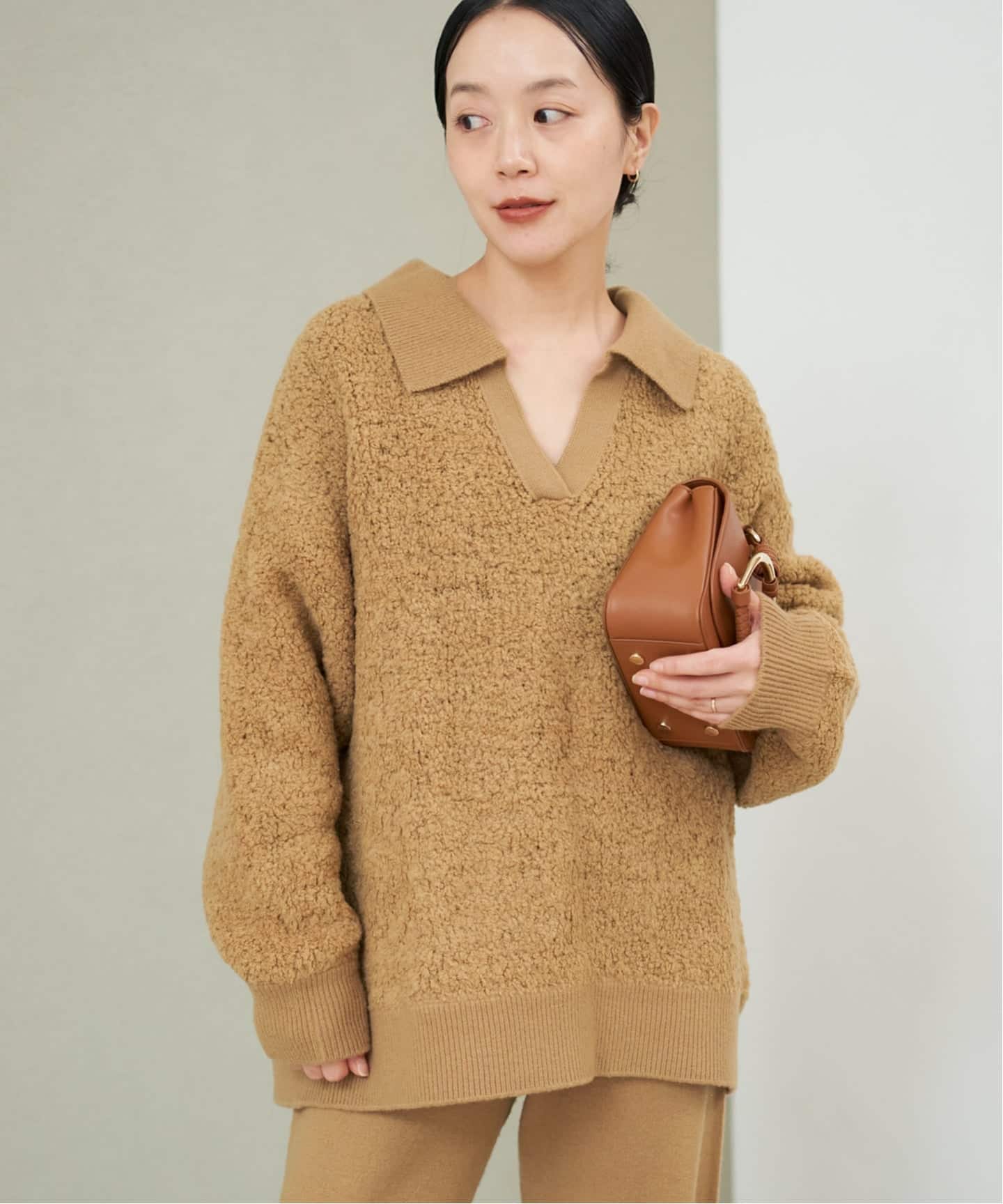ウールナイロンのフェザーヤーンで仕立てた、テディベアのような柔らかなボア編地のスキッパーニット。