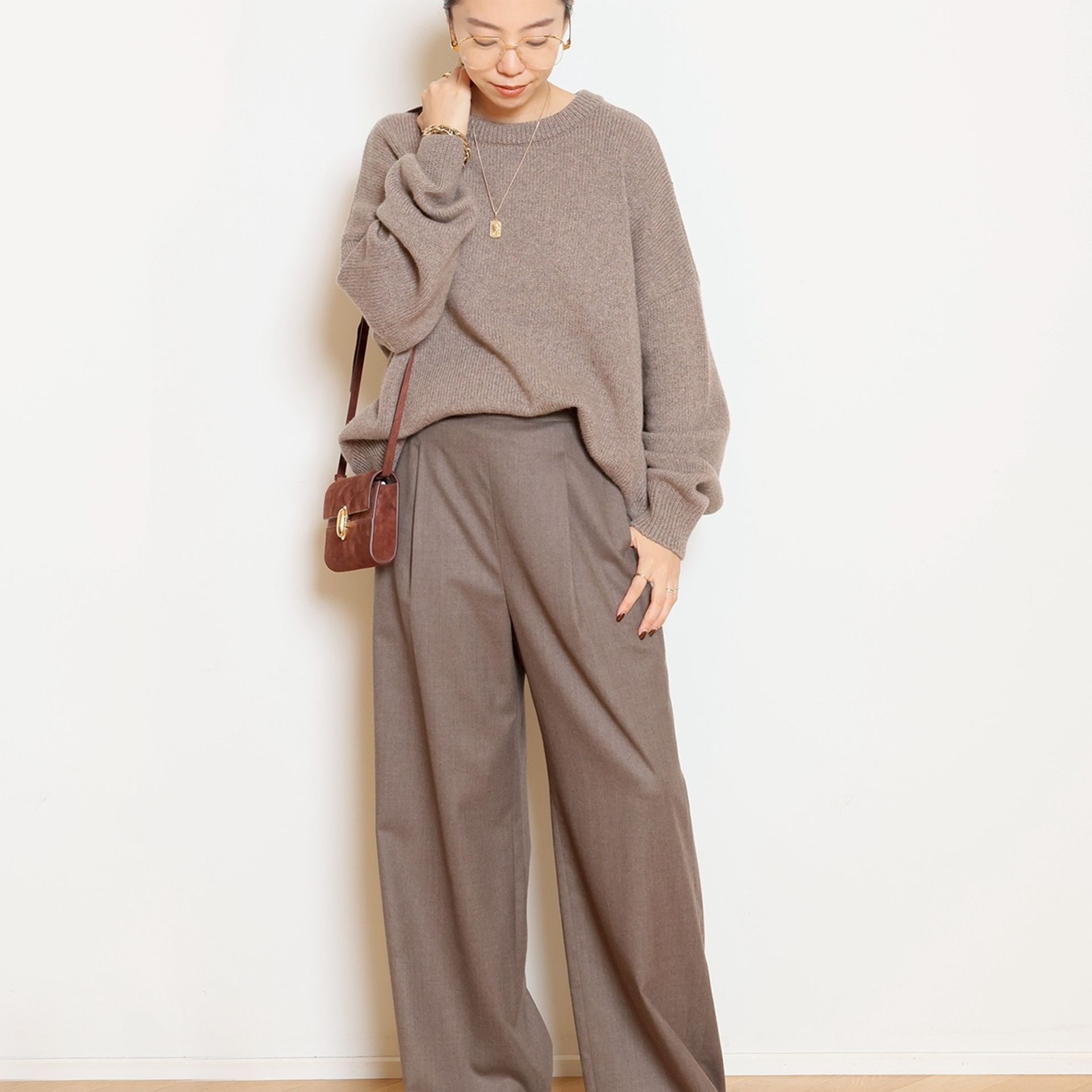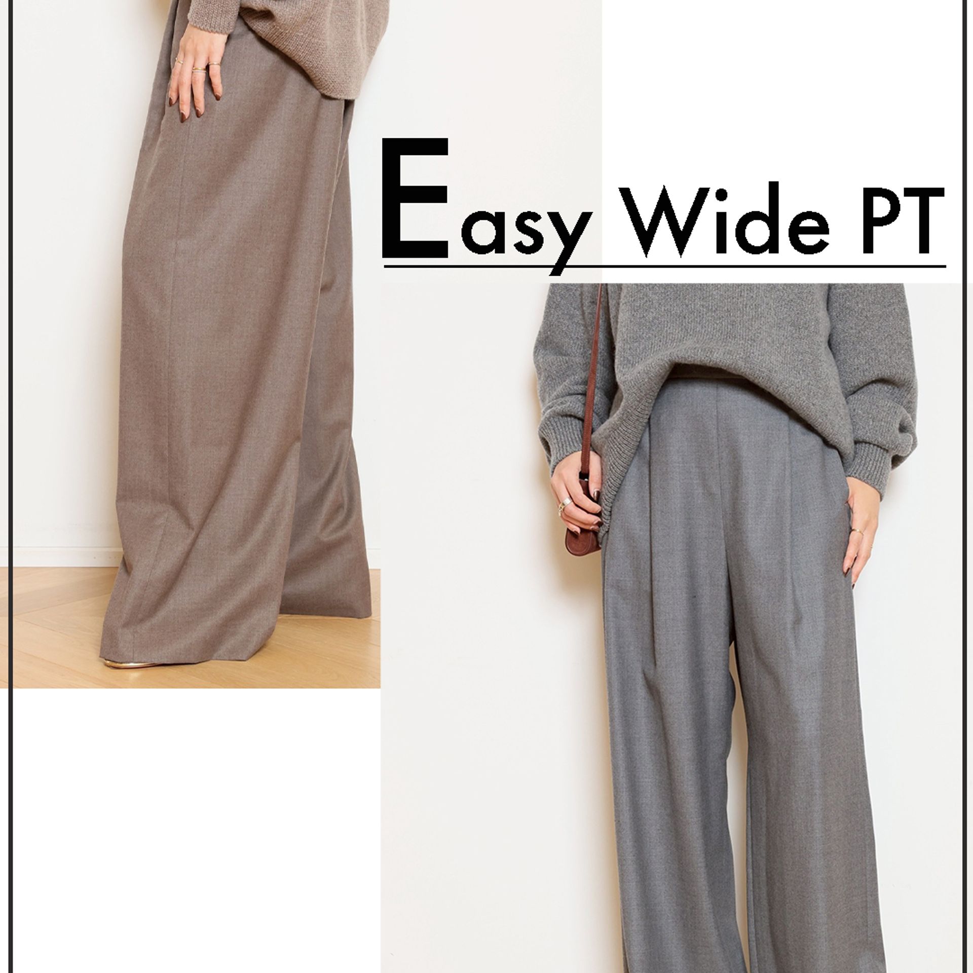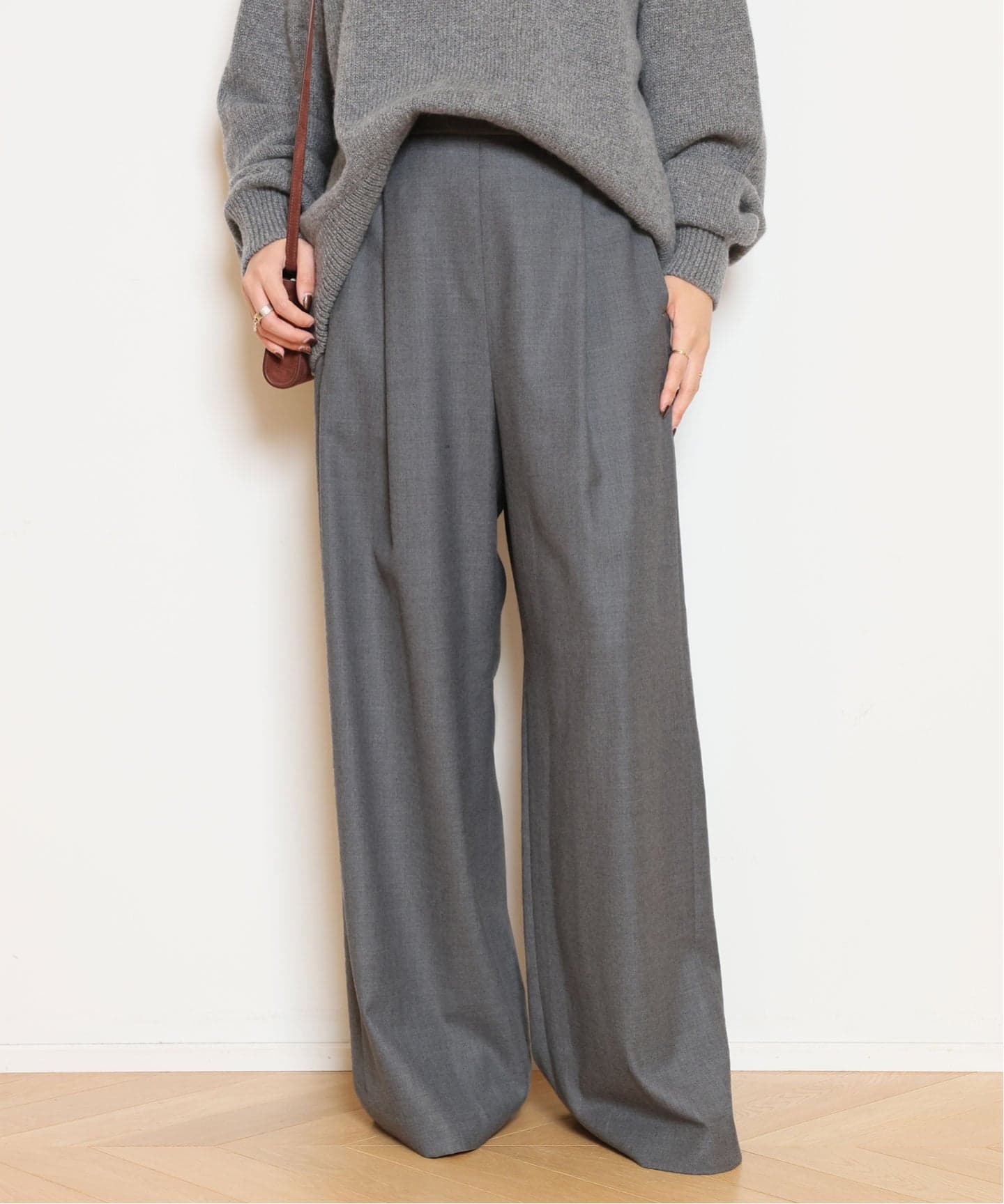 Cashmere Basic Knit と相性抜群の Easy Wide PT(フラノ)。セットで持っておきたい、万能ワイドパンツです。もちろん単品使いでも活躍。
