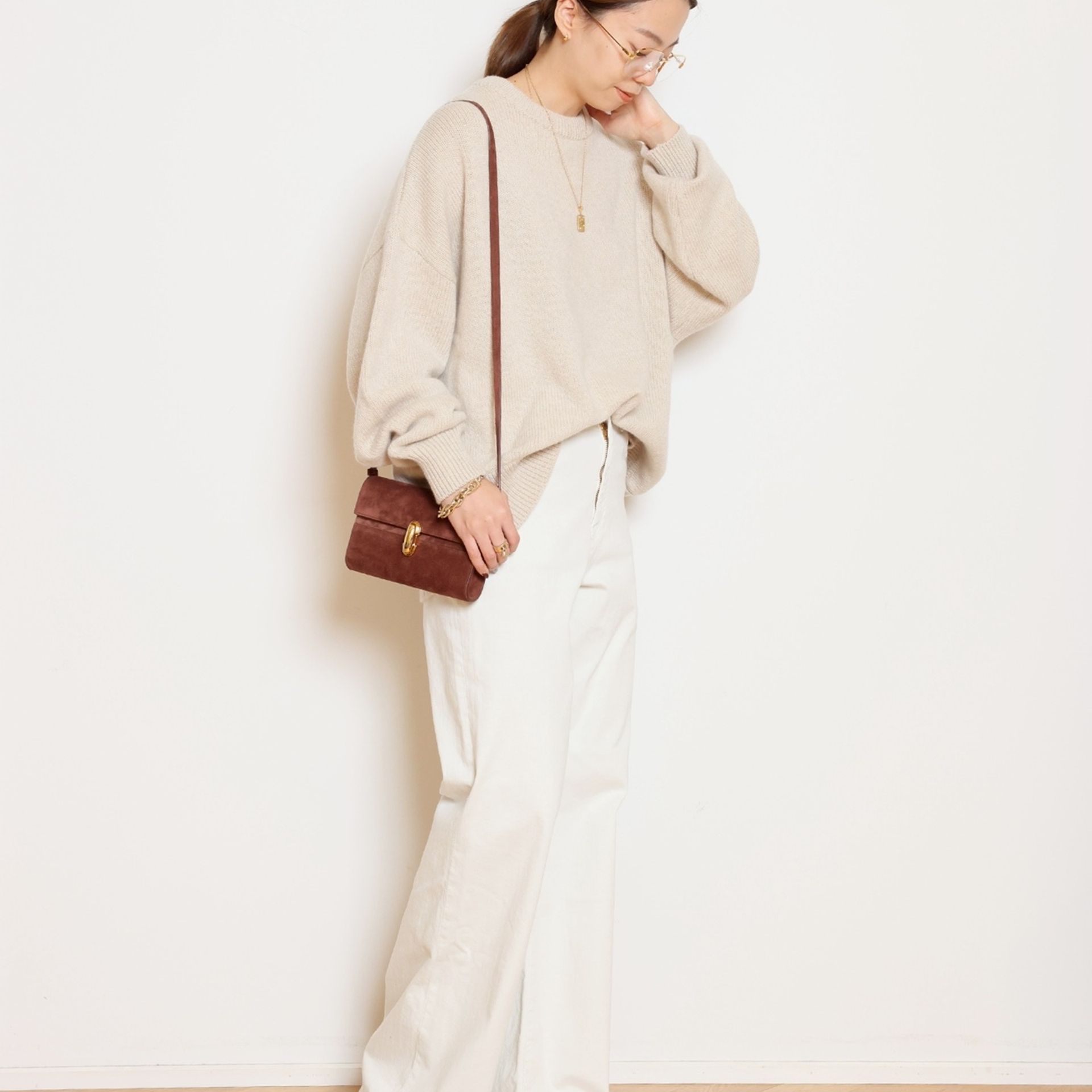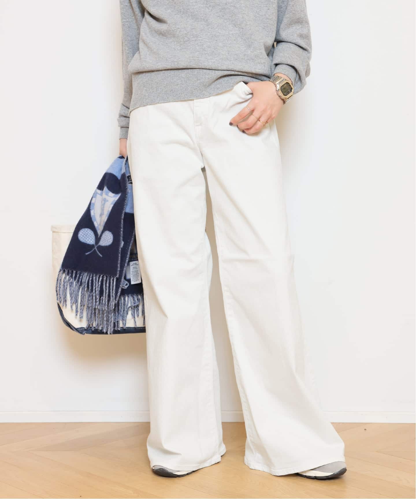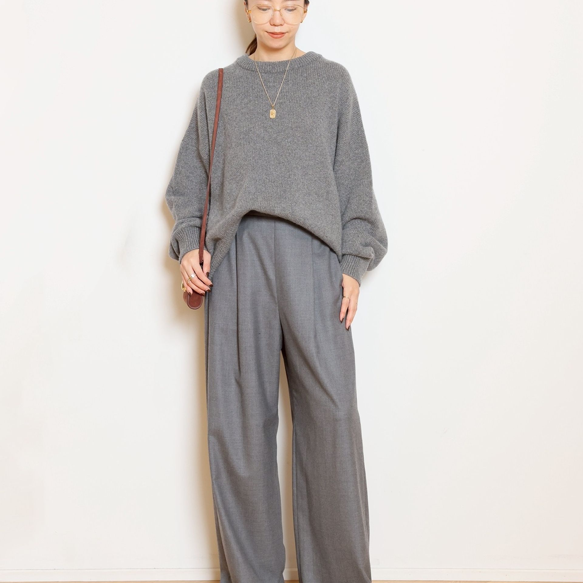 Cashmere Basic Knit と相性抜群の Easy Wide PT(フラノ)。セットで持っておきたい、万能ワイドパンツです。もちろん単品使いでも活躍。
