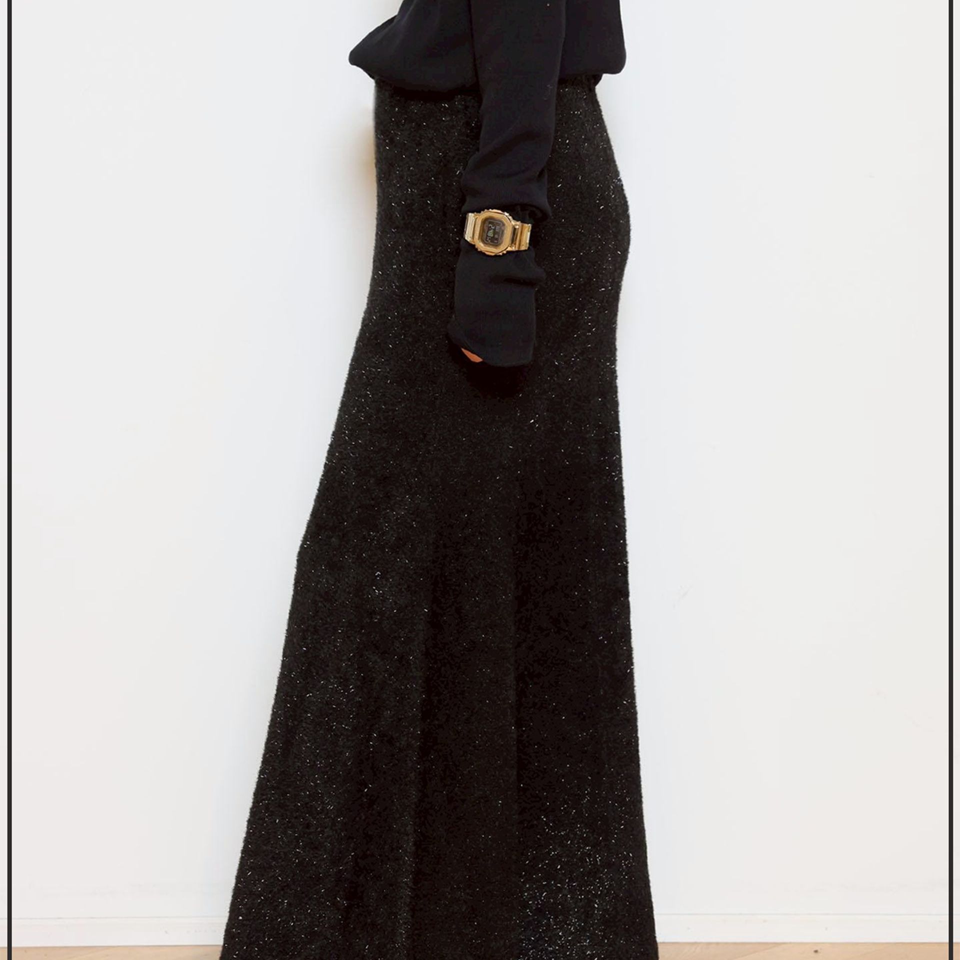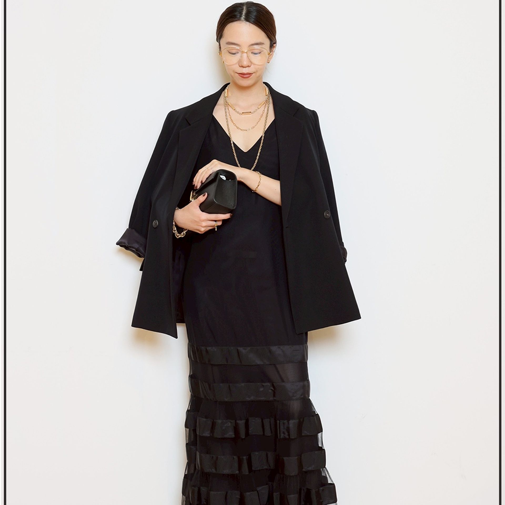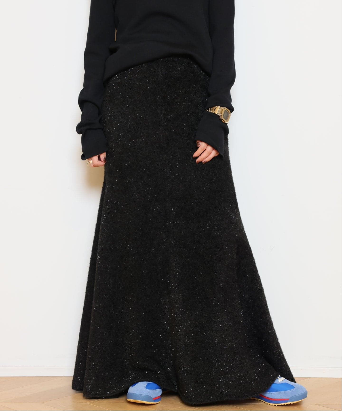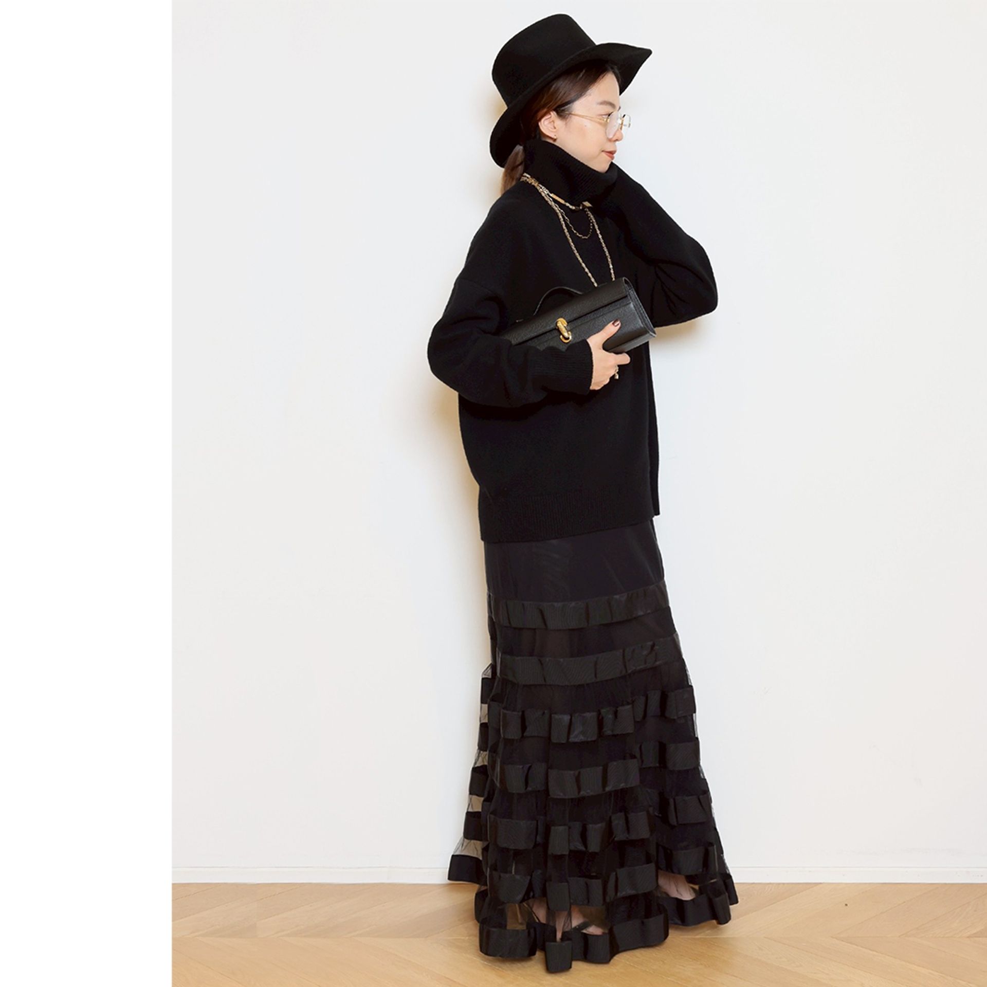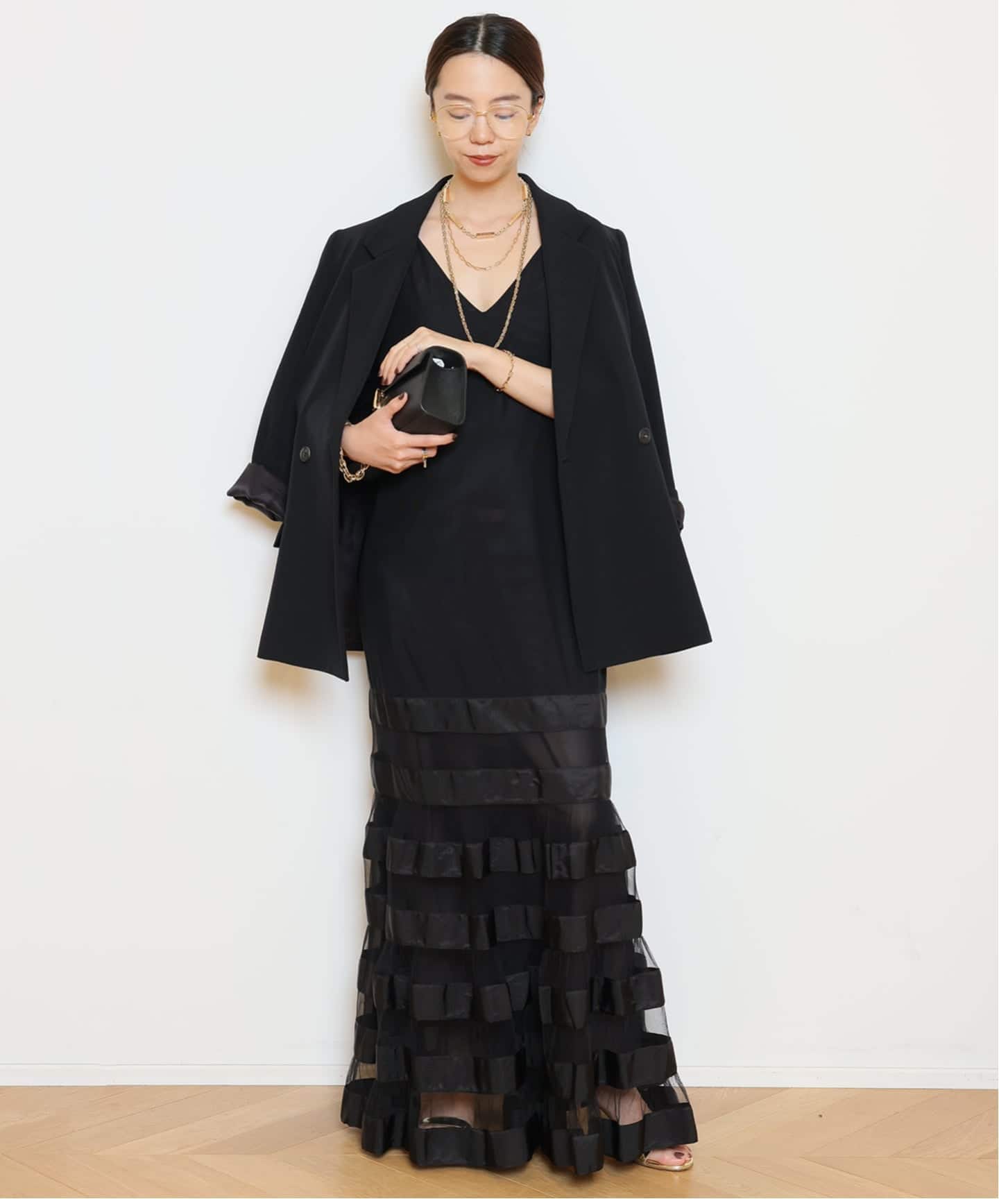 スカートは贅沢なフレアラインが歩くたびに揺れ、存在感がありながらも軽やか。