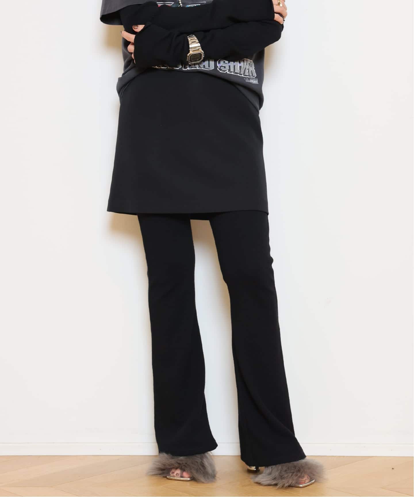 レギンスを重ねたり、ブーツで脚元にボリュームを出してバランスを整えたり。スタイリングの幅を広げてくれる万能ピース。