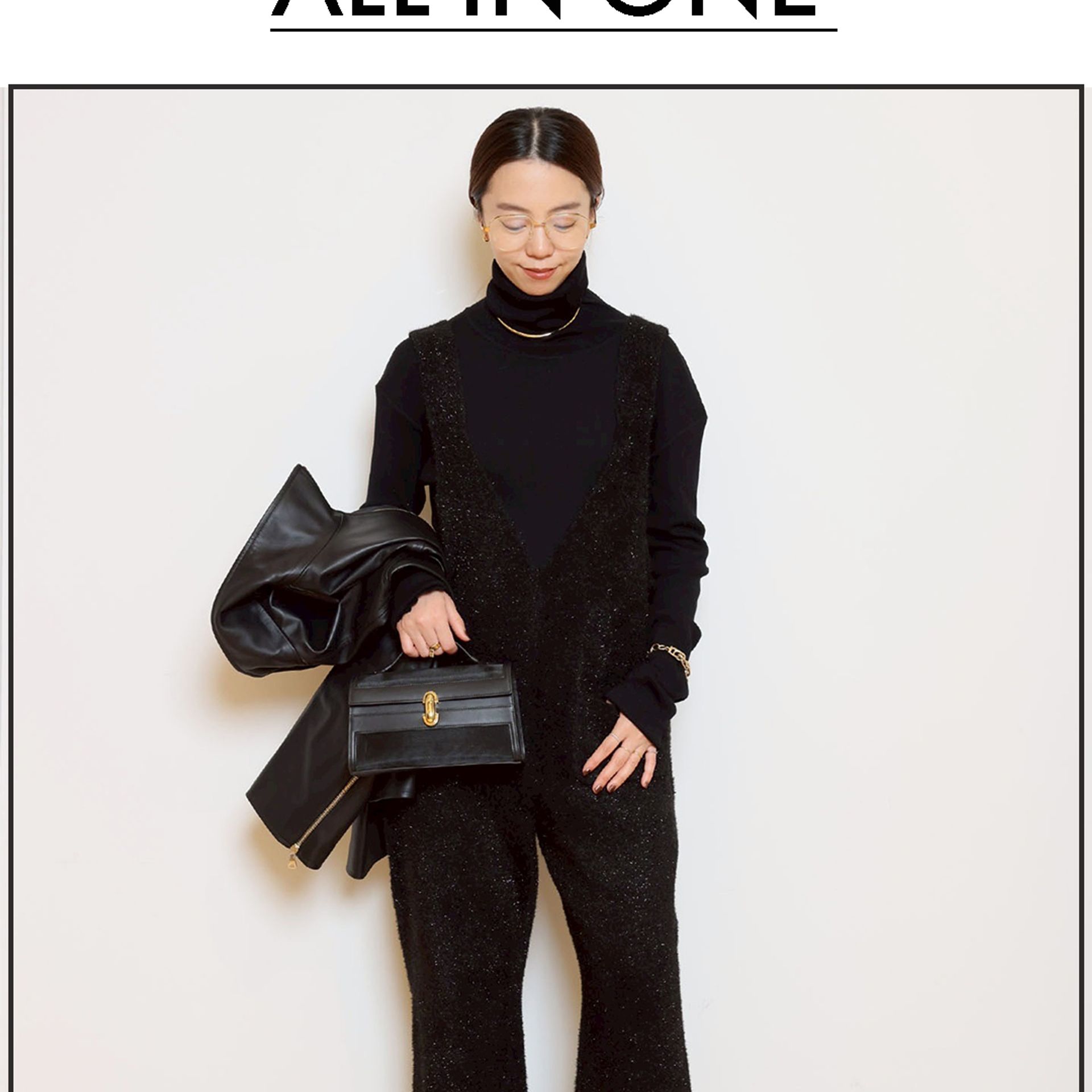 オールインワンは、ほどよい張りと伸縮性のある接結編みによる、美しいシルエットが魅力。