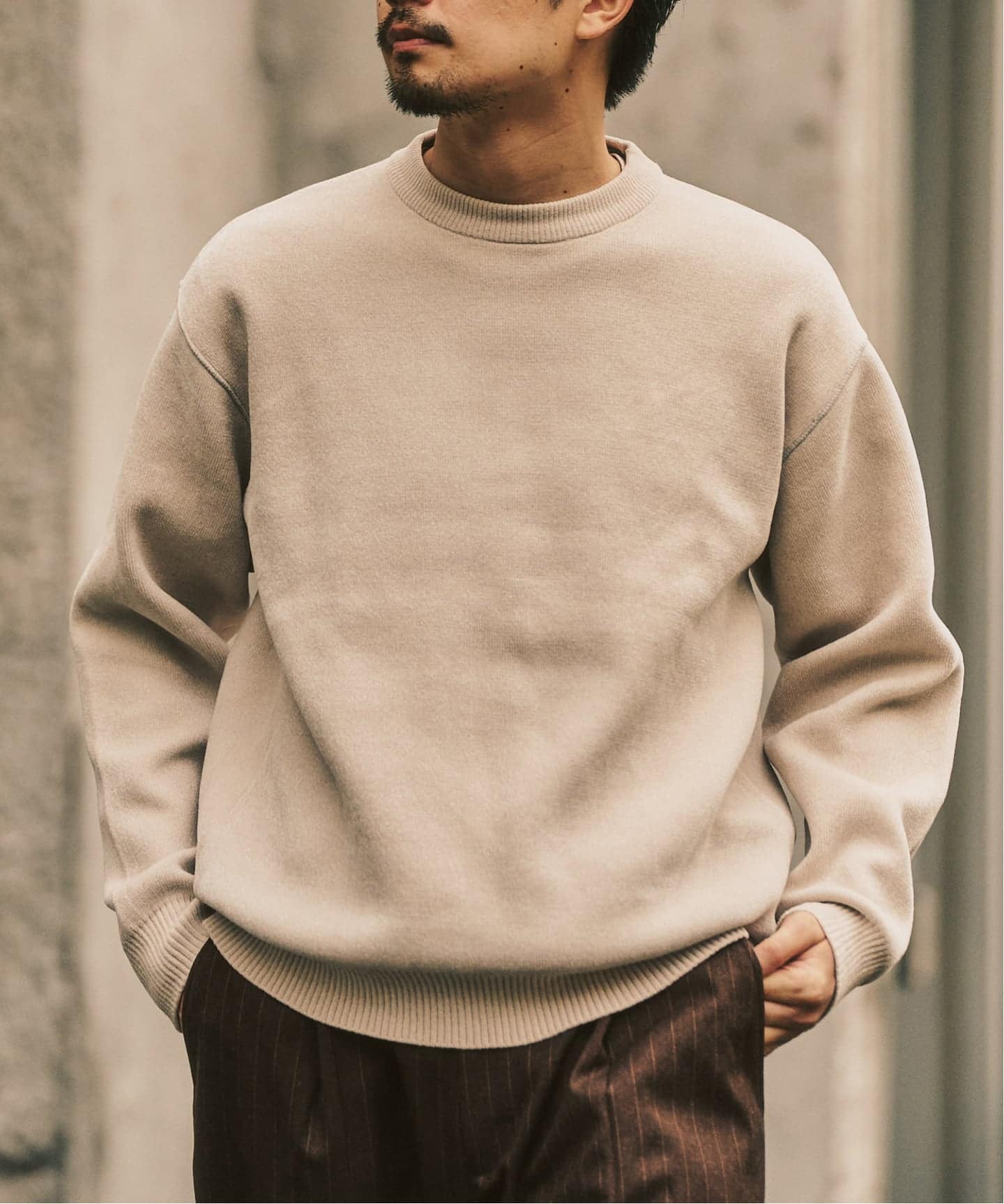 ふわりとした起毛感とクラシックな佇まいで、冬のコーデを品よく仕上げる名作ニット。