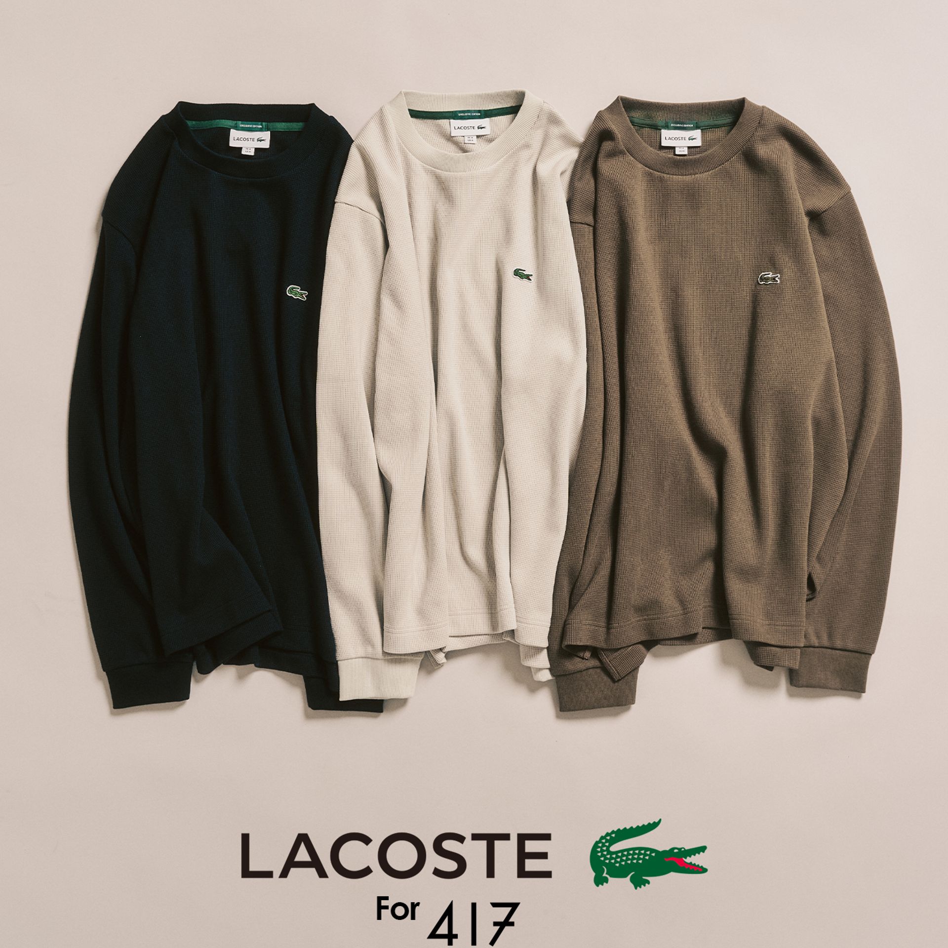 今年も完売必須のLACOSTE別注!ワッフルを417らしいクリーンな空気感で仕立て直した、“一枚で主役になる”別注ロングスリーブです◎
