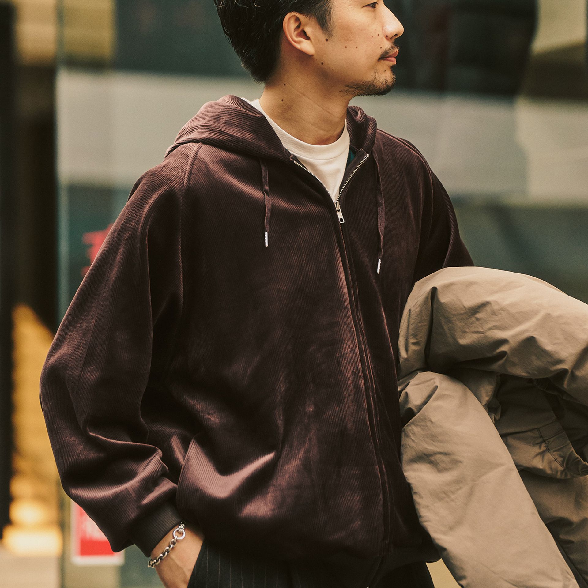 コーデュロイの上品さに軽快さを加えた、冬を快適にする都会派アウター。パートナーとユニセックスでシェアするのもおすすめ!